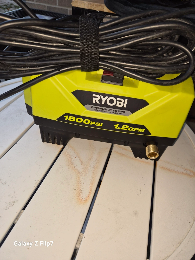 Selling a Ryobi premium electric pressure washer. It delivers 1800 PSI at 1.2 GPM. Great for cleaning decks, patios, and other outdoor surfaces. It's in good condition and ready to use!