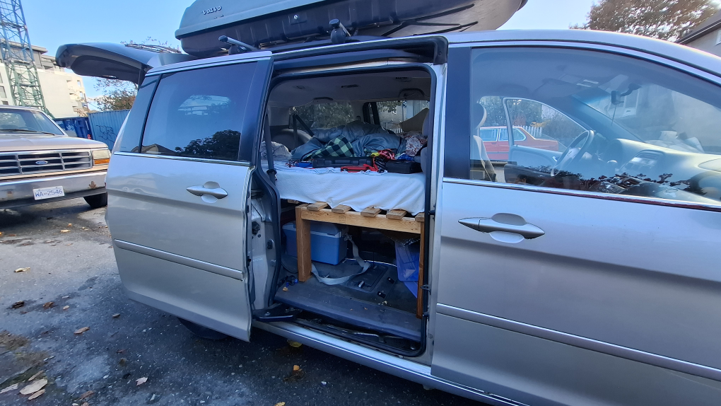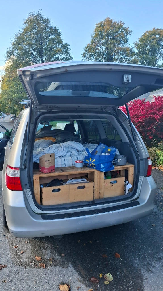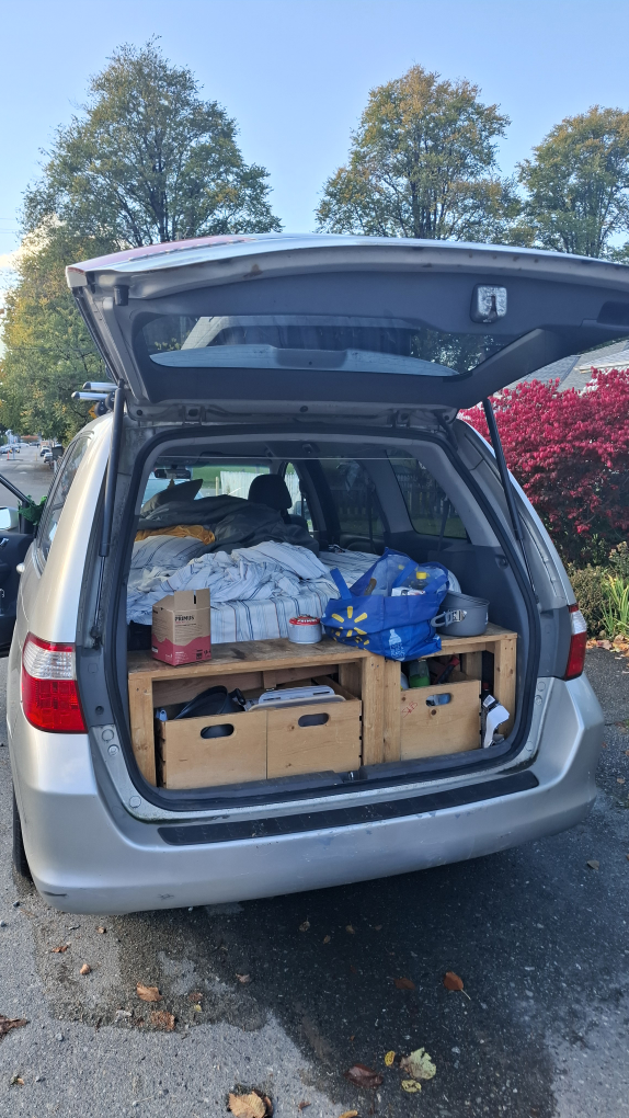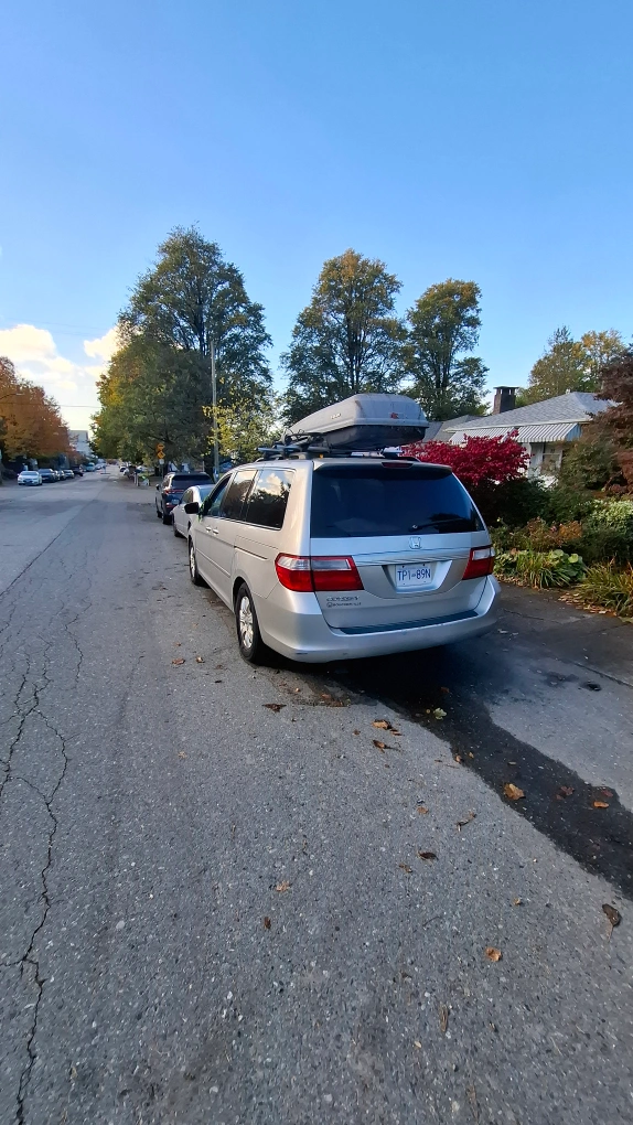 Selling a Honda Odyssey minivan. It has a roof box and a custom wooden platform bed in the back. The odometer reads 304582 km. I have all the documentation of work done Proof of Documentation available Car battery changed end of 2023 Starter replaced Oct 2024