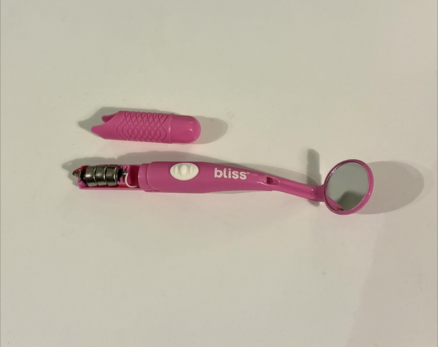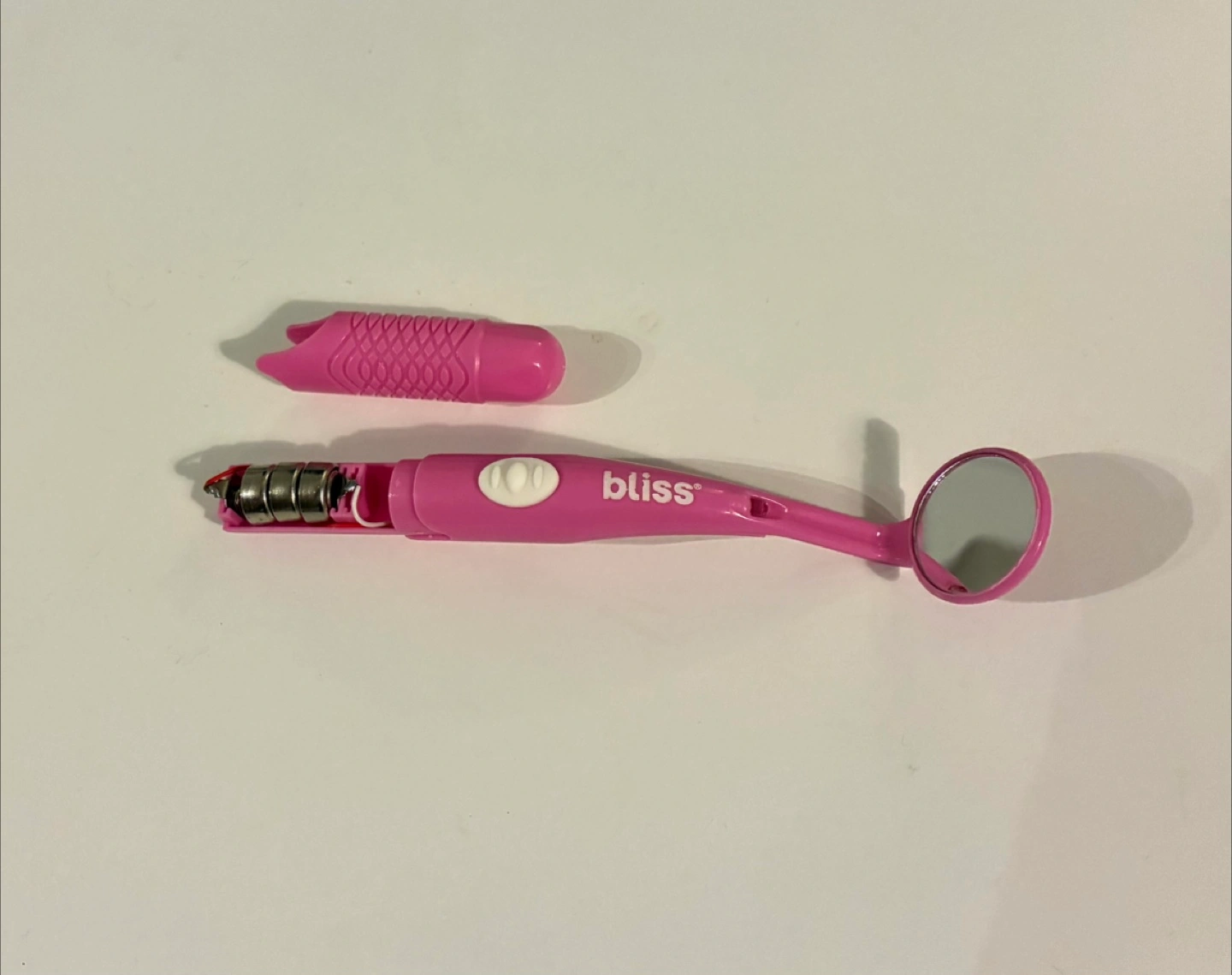 Never been used. Includes batteries. Mirror is slightly scratched, but it came that way (see last photo).