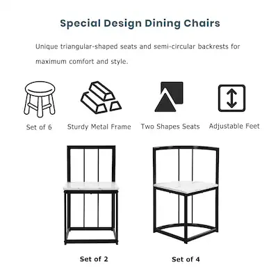 The 4 corner chairs are triangle shape 🔺 to contour to an oval table and the 2 middle chairs square ⬜ seats.