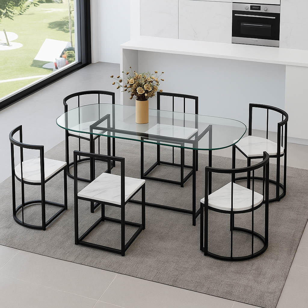 👉you can also use just the corner chairs with a round glass top table , or just the 2 square with a 2 seater table.