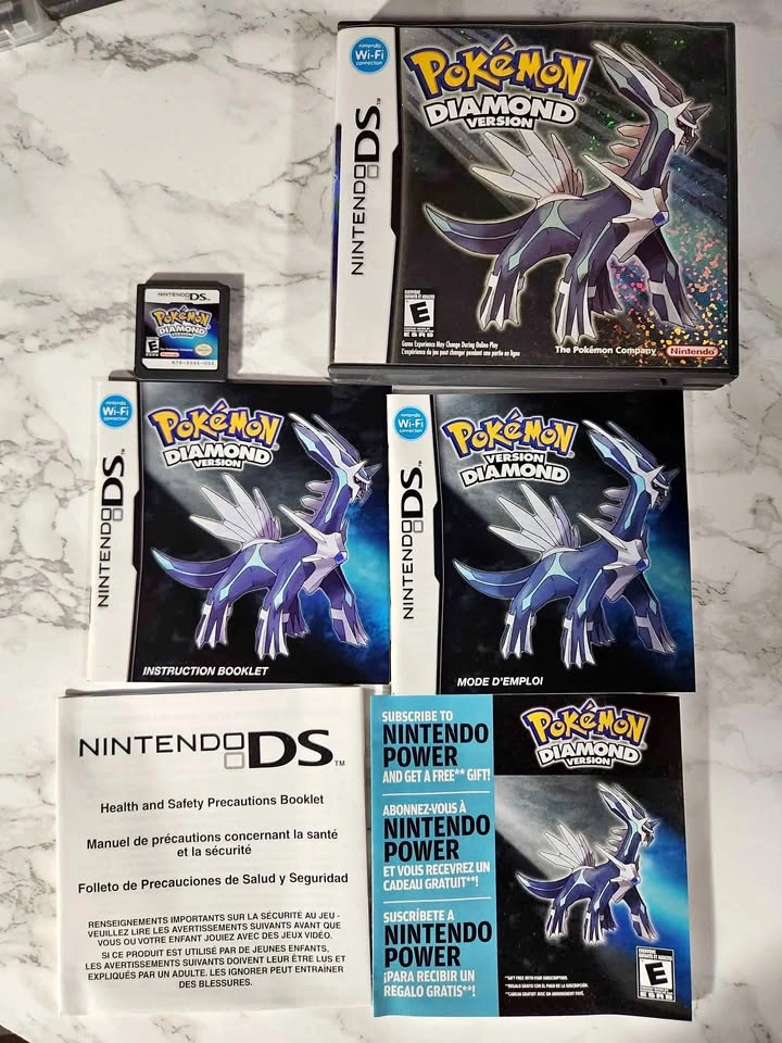 Pokémon Diamond Version for Nintendo DS, complete in box (CIB). This classic DS game comes with the original cartridge, box, and insert.