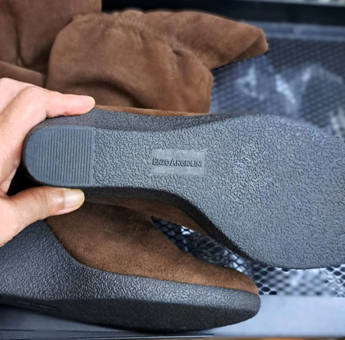 The boots are made of genuine leather. These Enzo Angiolini boots are a must-have in your collection. You can wear them business or casual. The arch is comfortable. It has even, tight stitches with no loose threads. It creates meticulously crafted footwear that embodies the essence of Italian craftsmanship. It is in excellent condition. Well kept and sanitized. Used like New. Brown.