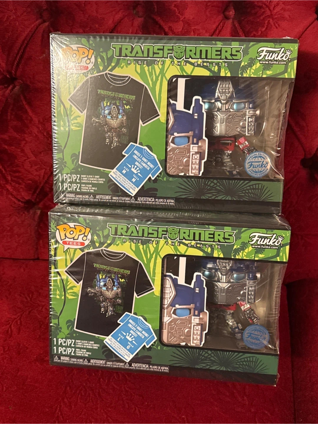 1000+Selling a brand new, in-box Funko Pop! Transformers: Rise of the Beasts set! It includes a special edition Optimus Prime vinyl figure and a Transformers graphic tee. The tee is a unisex size M And large available Box is included! $40 each