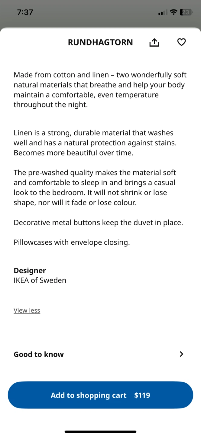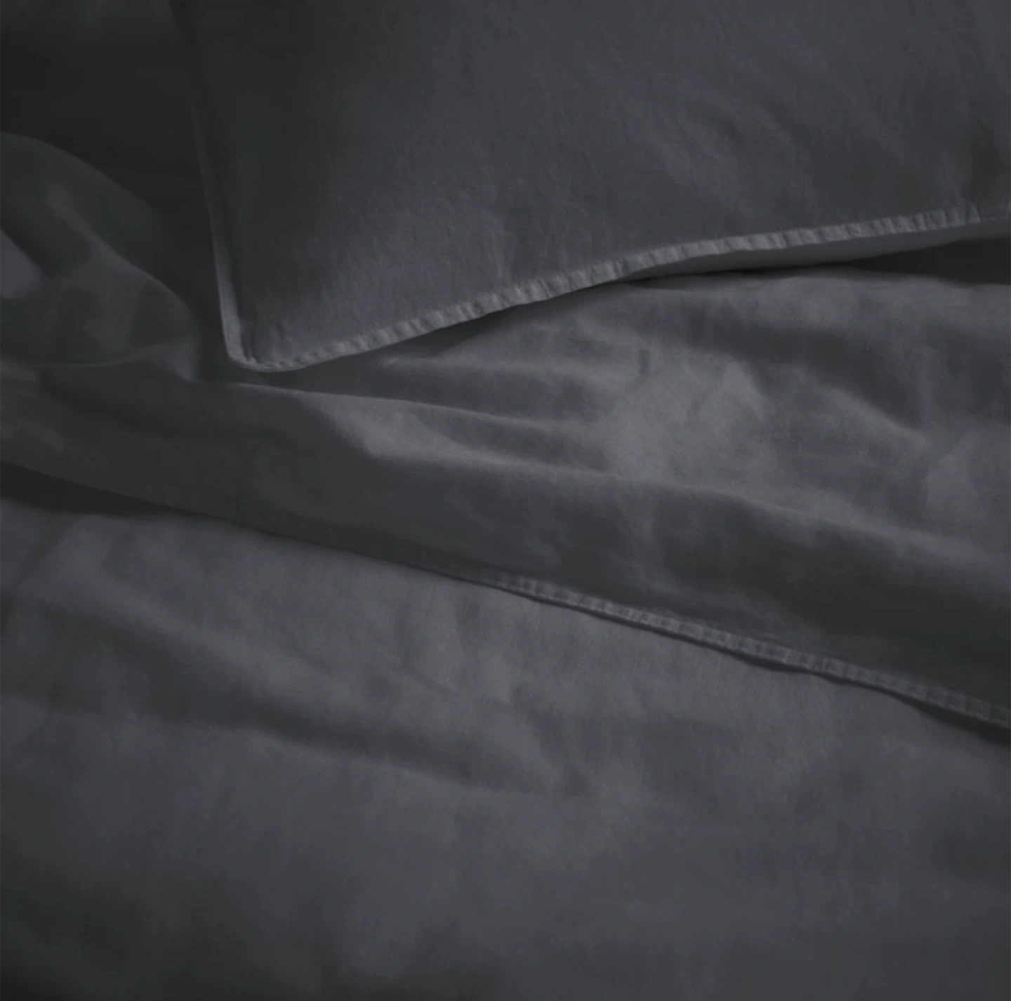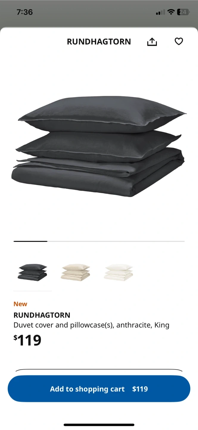 Looking to refresh your bedroom? I'm selling an IKEA RUNDHAGTHORN duvet cover and pillowcase set in anthracite. It's a King size, made from natural cotton and linen fibres. Used once. Washed twice (before and after use).
