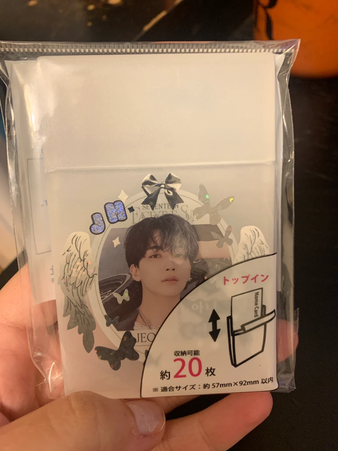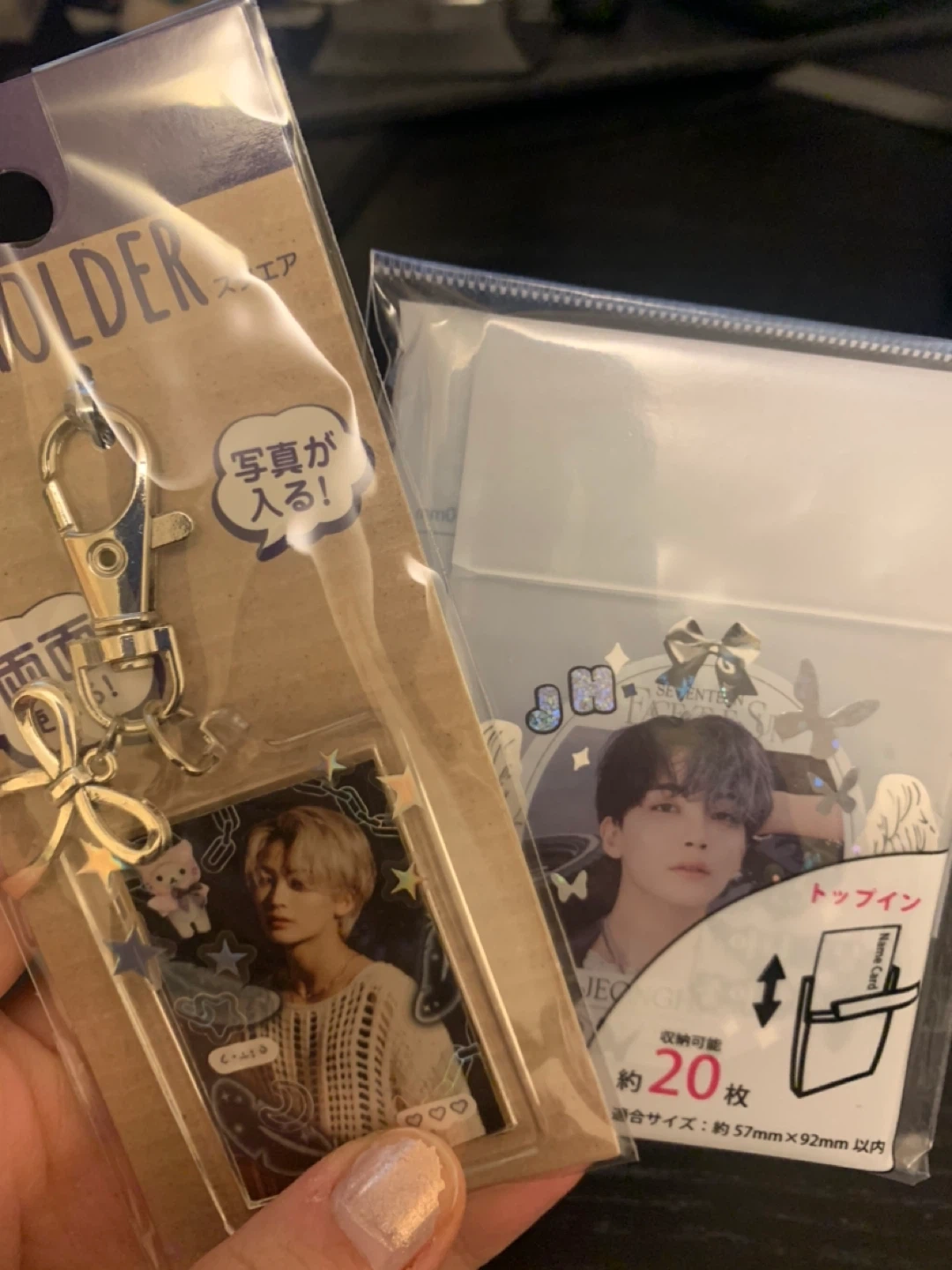 Hand decorated jeonghan themed keychain and card case. Cute addition to any carats collection!