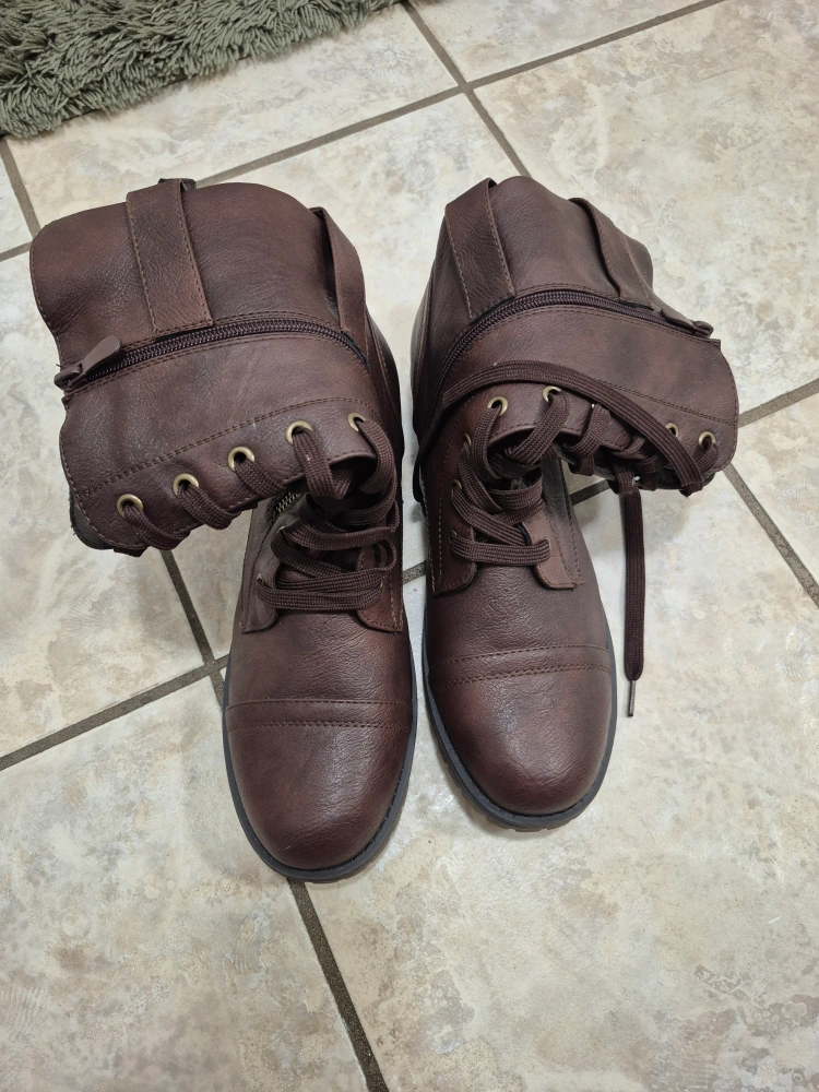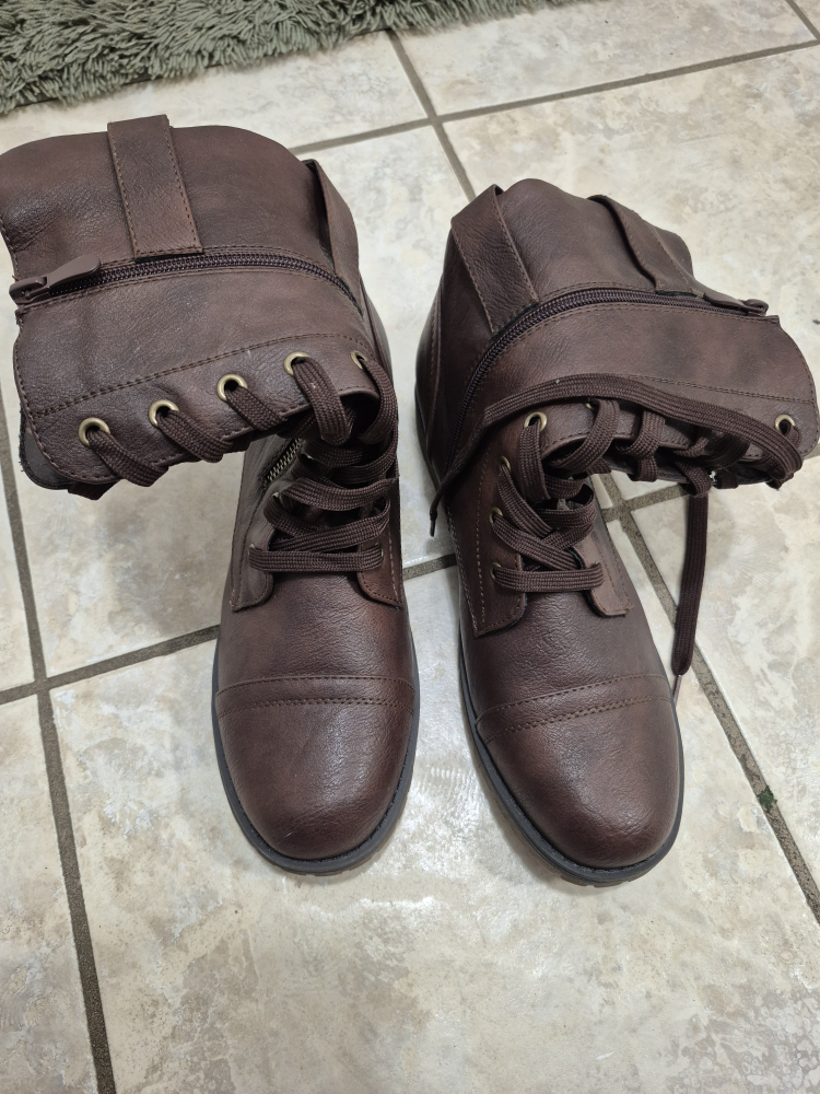 Selling a pair of brown, lace-up ankle boots in size 9. They're in great condition and ready for a new home! never worn not my size pet and smoke free house .