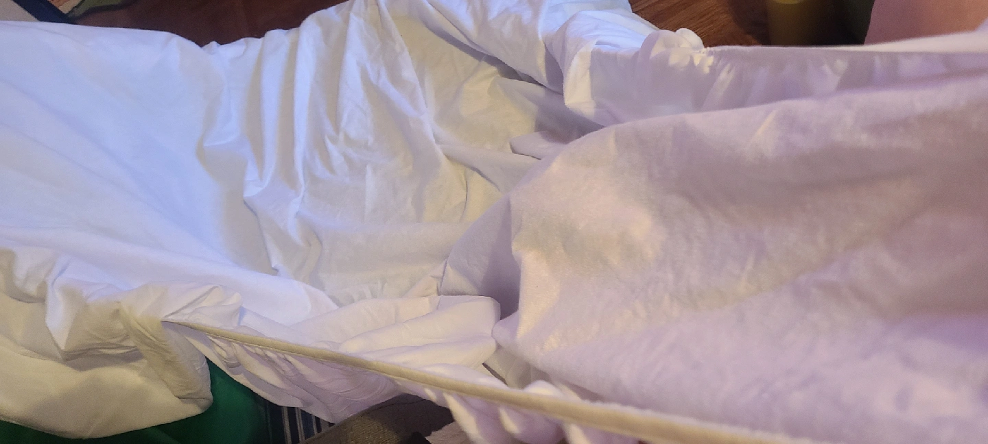 1000+PICK UP BY GERRARD AND RIVER ST ADDRESS GIVEN ONCE MEETUP IS SET New fitted double, Deep pockets/corners sheet It's in great condition and ready for a new home! Has been Laundered very white. has water resistant layer inside just incase spills occur. The care instructions are: machine wash gentle in lukewarm water, do not use chlorine bleach, tumble dry at low temperature, do not iron, do not dry clean NEED GONE ASAP see my other posts