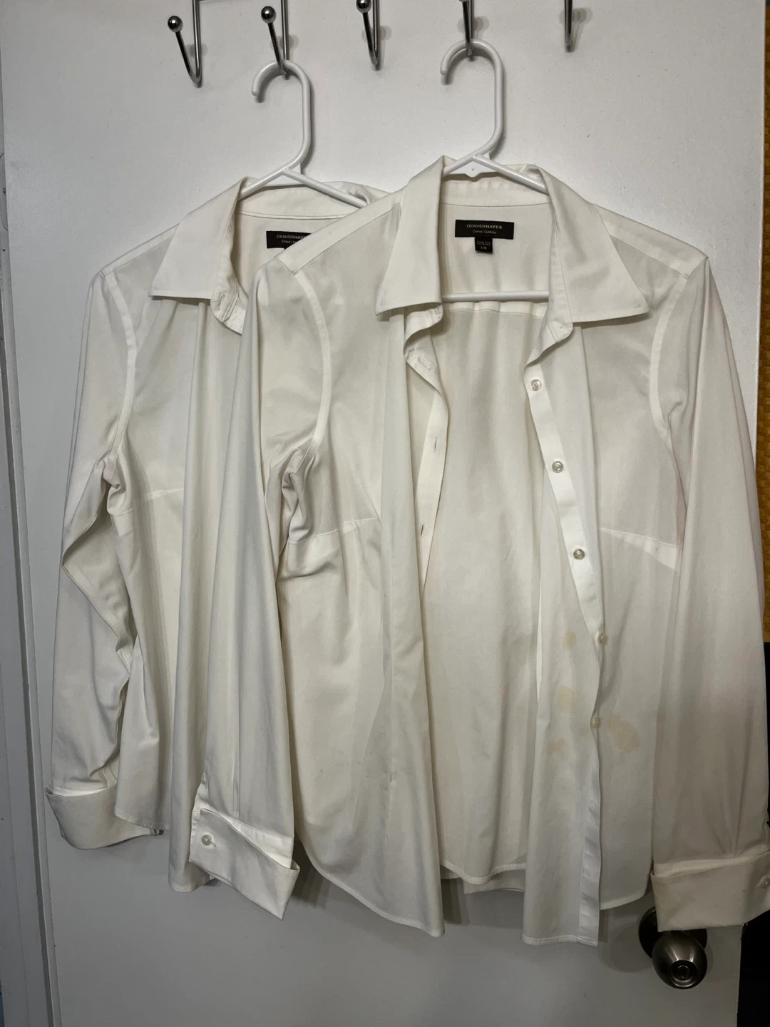10I'm selling 2 Denver Hayes white shirt in size L/G. It's from their Curvy/Galbée line and has a stretch material for extra comfort. Perfect for work or casual wear!