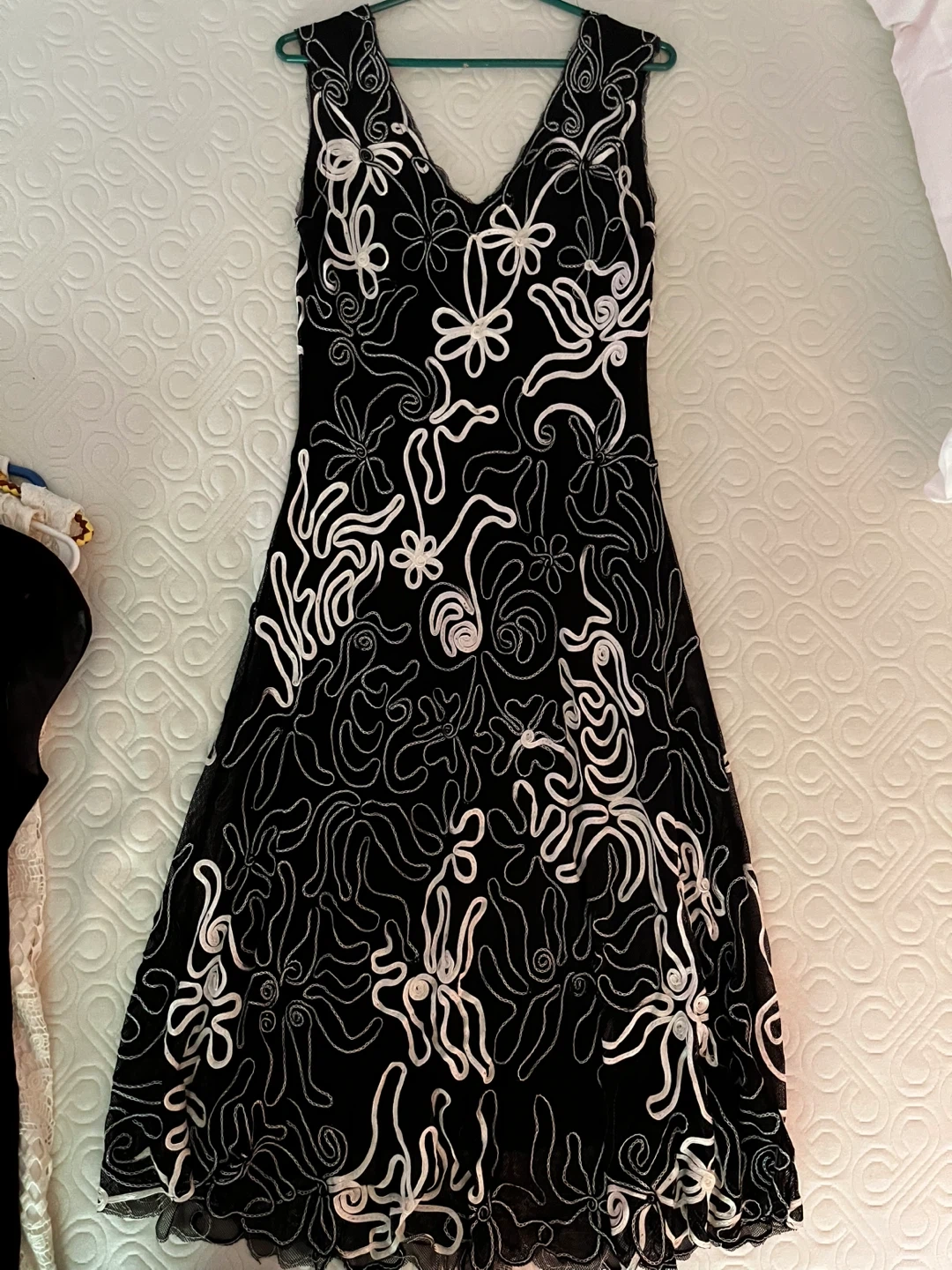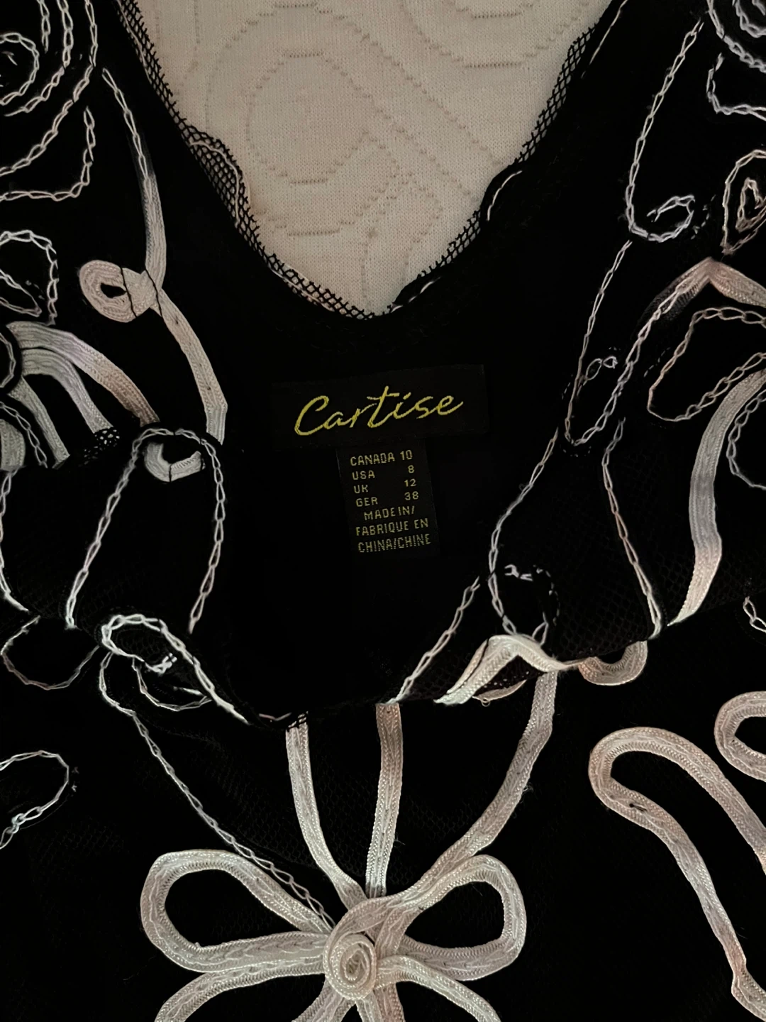 10Selling a lovely Cartise dress! It's a size 10 and features a beautiful black and white floral pattern. Perfect for a special occasion or a night out