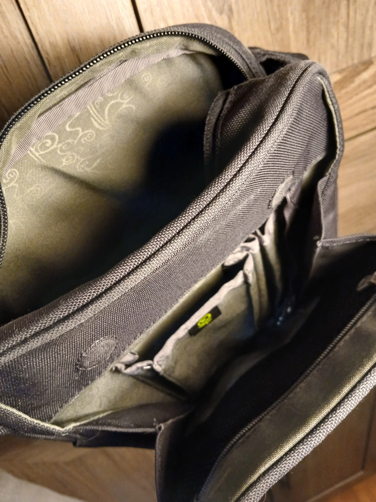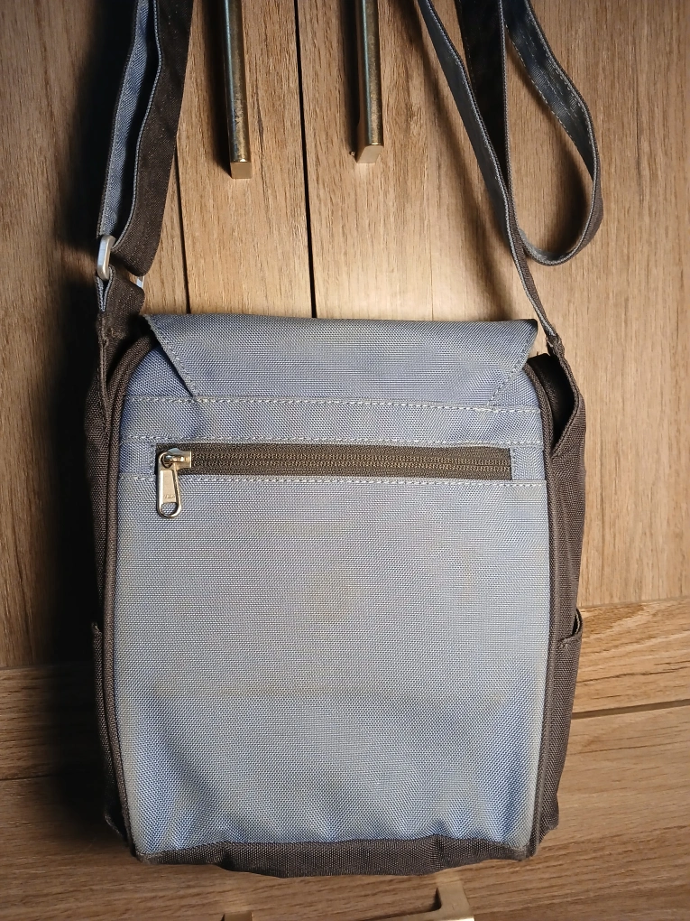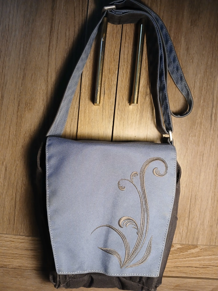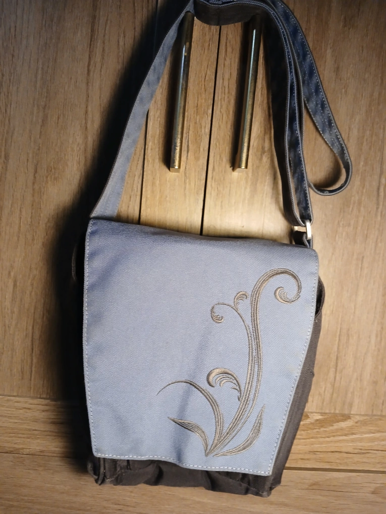 654REI Floral Pattern Grey Blue Crossbody Bag. Magnetic flap closure. 2 compartments with several pockets. Back zip pocket. Adjustable strap Measures approximately 9"H x 8"W. It's in wonderful used condition, brand new in most areas but shows some spots on the back and within the flap and some wear in spots. You really have to inspect it to see it. Thus my price