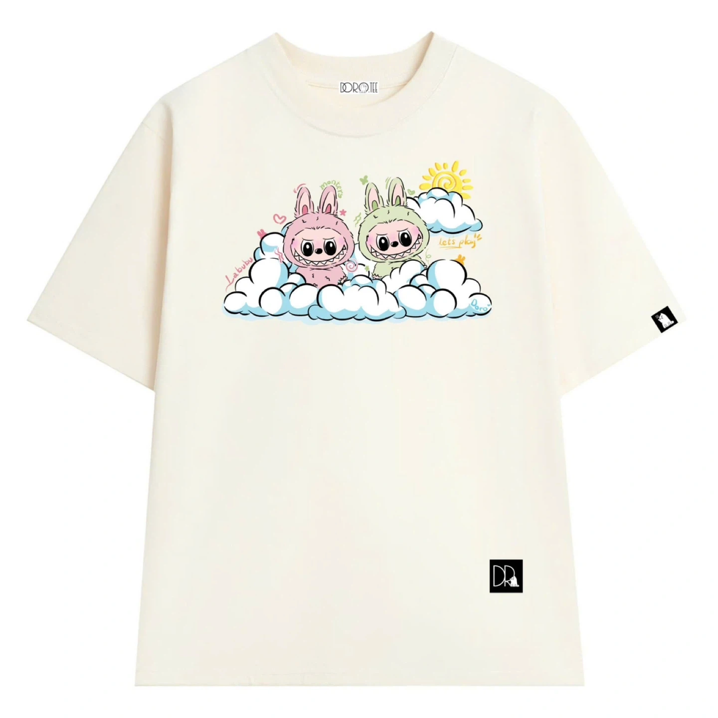 Cute DOROTEE tee with a fun graphic print! This white t-shirt features adorable characters on a cloud design. It's a size M and L perfect for everyday wear. Check out the size chart in the photos for measurements!
