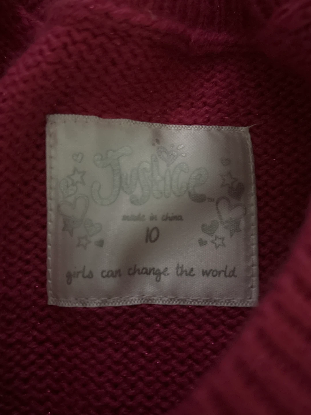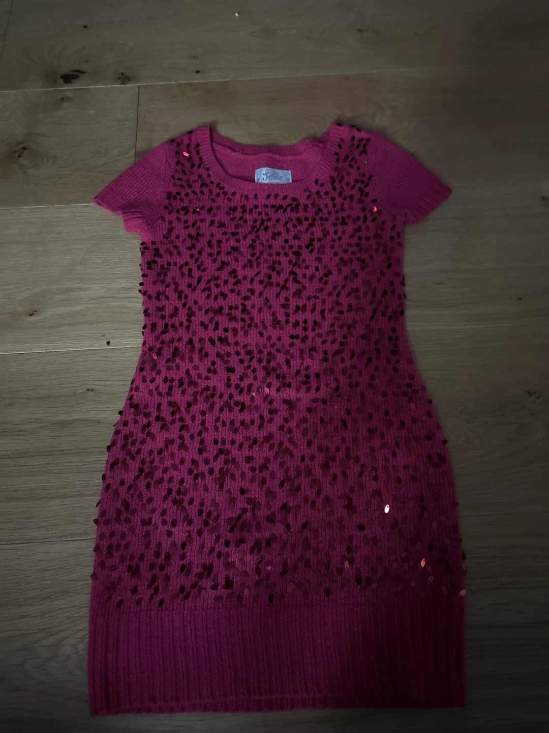 Selling a cute Justice girls' sweater dress in size 10. It's a lovely pink colour and features sparkly details. Perfect for a party or special occasion!