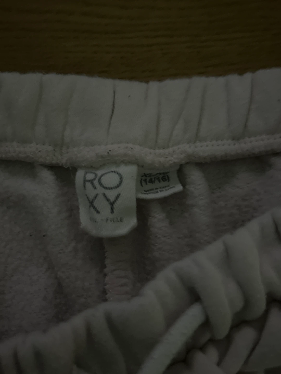Selling a pair of Roxy girls' fleece jogger pants. They are light pink and in great condition. The size is 14/16.