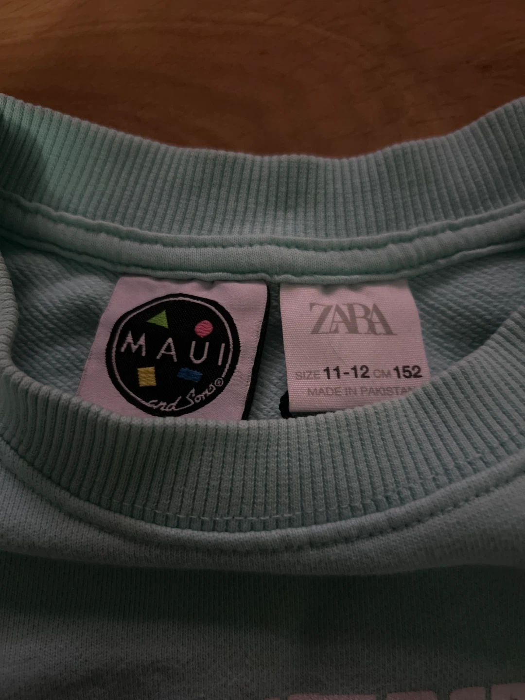 Selling a cute Zara sweater for kids! The size is 11-12 (152 cm). It's a light blue colour with a fun design on the front and back