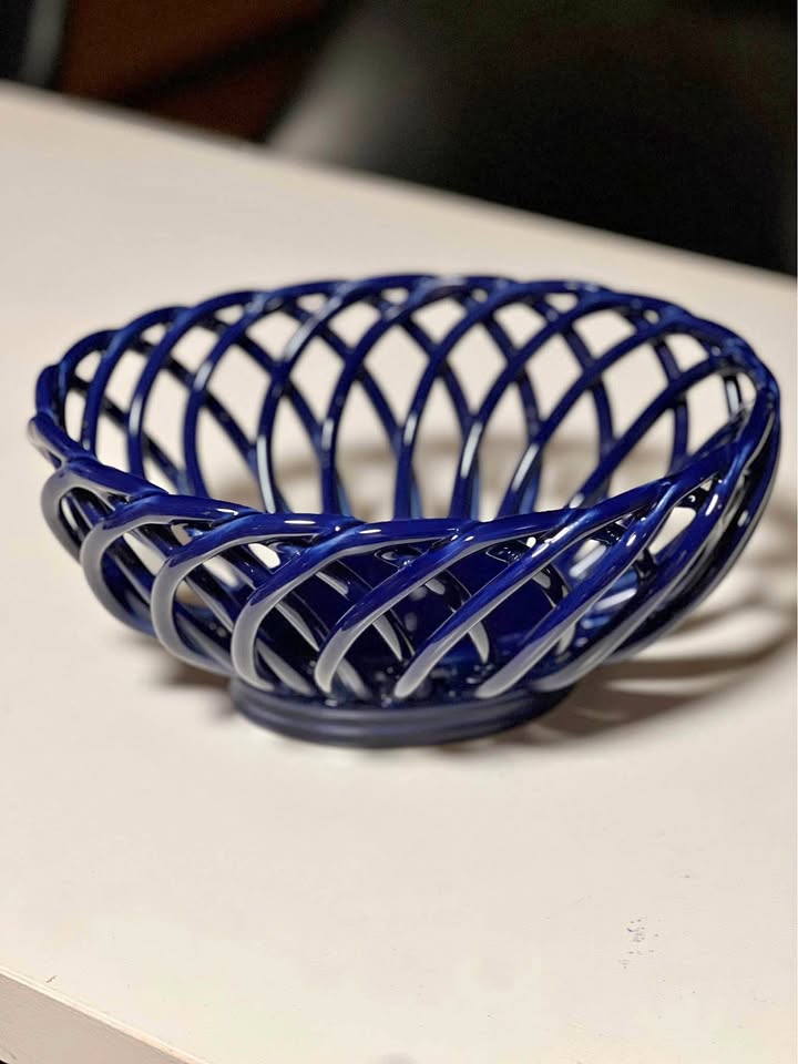 Beautiful handmade lattice-work bread warming baskets keep your bread warm with the solid ceramic base, but are cool enough to pass around the table due to the open weave of the upper part. These baskets also make gorgeous bowls for displaying fruit on the kitchen counter.