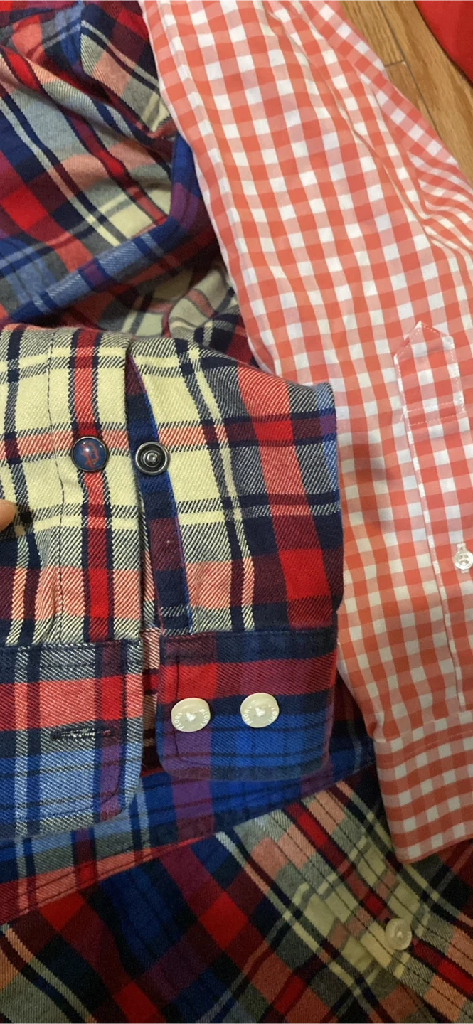 90Two shirts for sale! One is a Brooks Brothers red and white checkered button-down, size L. The other is a Plory Price & Glory Basic Fit flannel, size 185/104A.