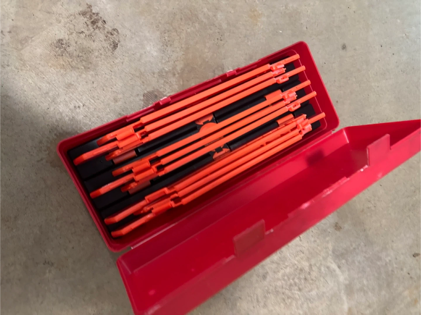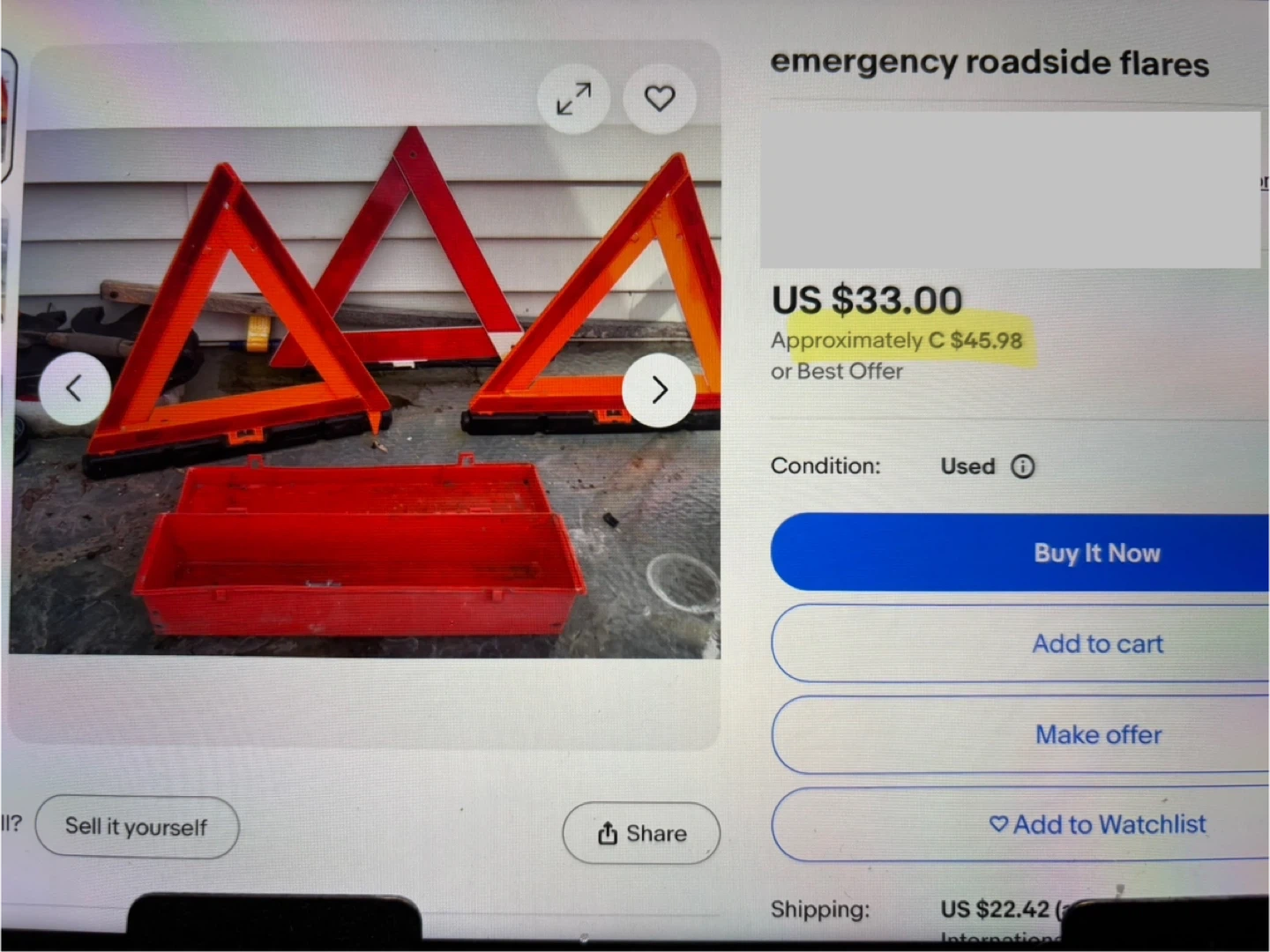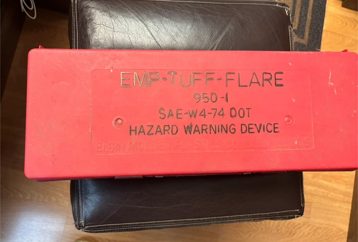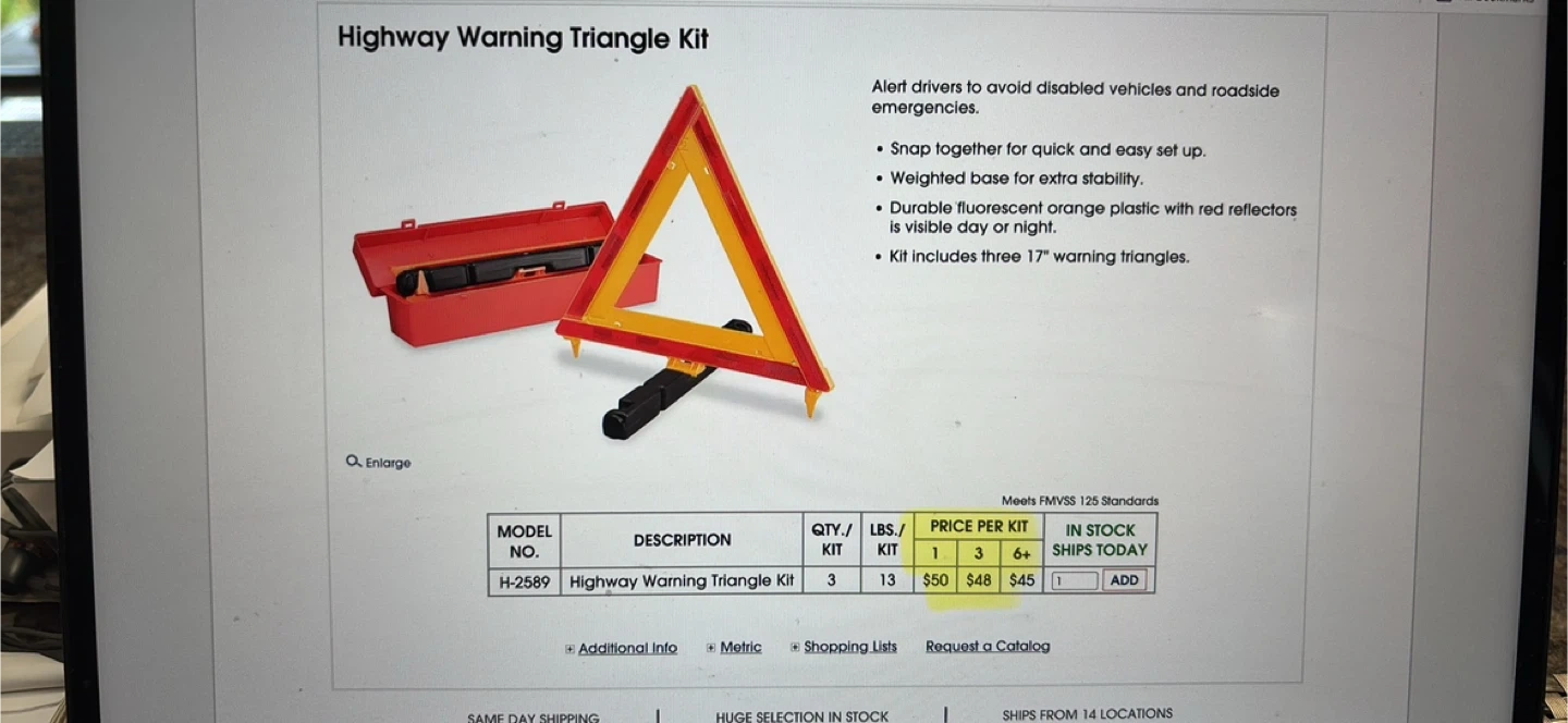60Selling a set of emergency warning triangles. These are great to have in your vehicle for safety. They come in a convenient red storage case, so they're easy to store and keep organized in your trunk. Perfect for roadside emergencies!