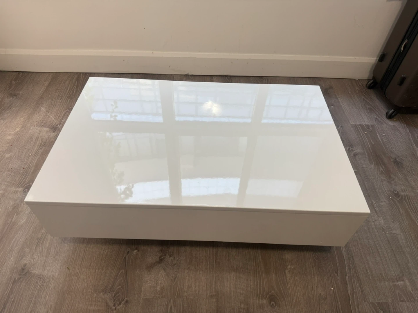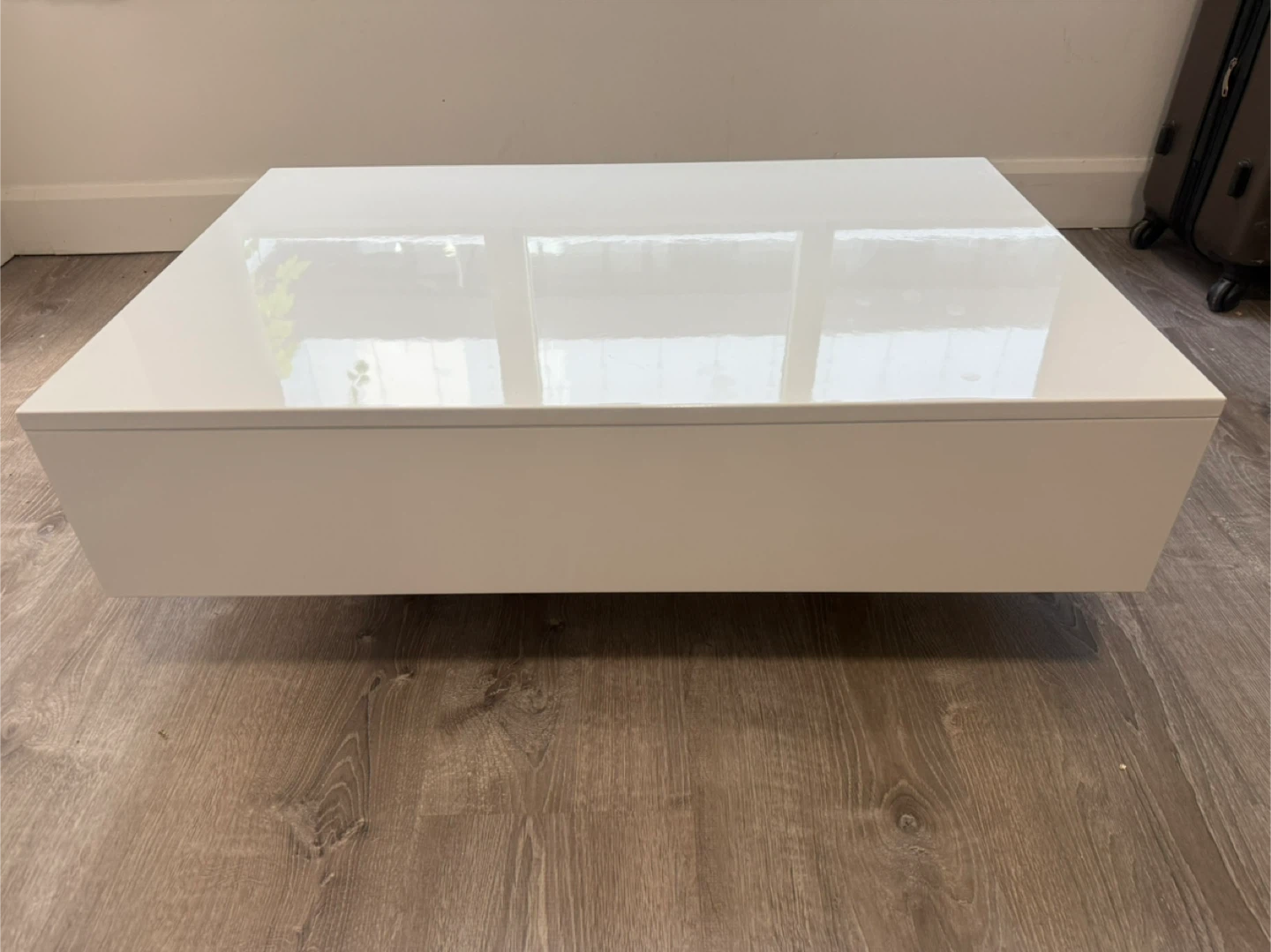 Selling a versatile cozy white coffee table . It's in great condition and ready to add a modern touch to your living space! Good quality and amazing condition!