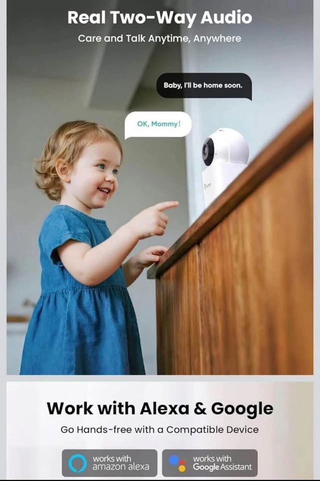 [2-Way Audio & Family Sharing] Enjoy crisp 2-way audio to talk with family or pets anywhere, thanks to its built-in mic and speaker. It’s a breeze to share camera access through the app. Sooth your anxious pets, say goodnight to your kids or keep the whole family connected.