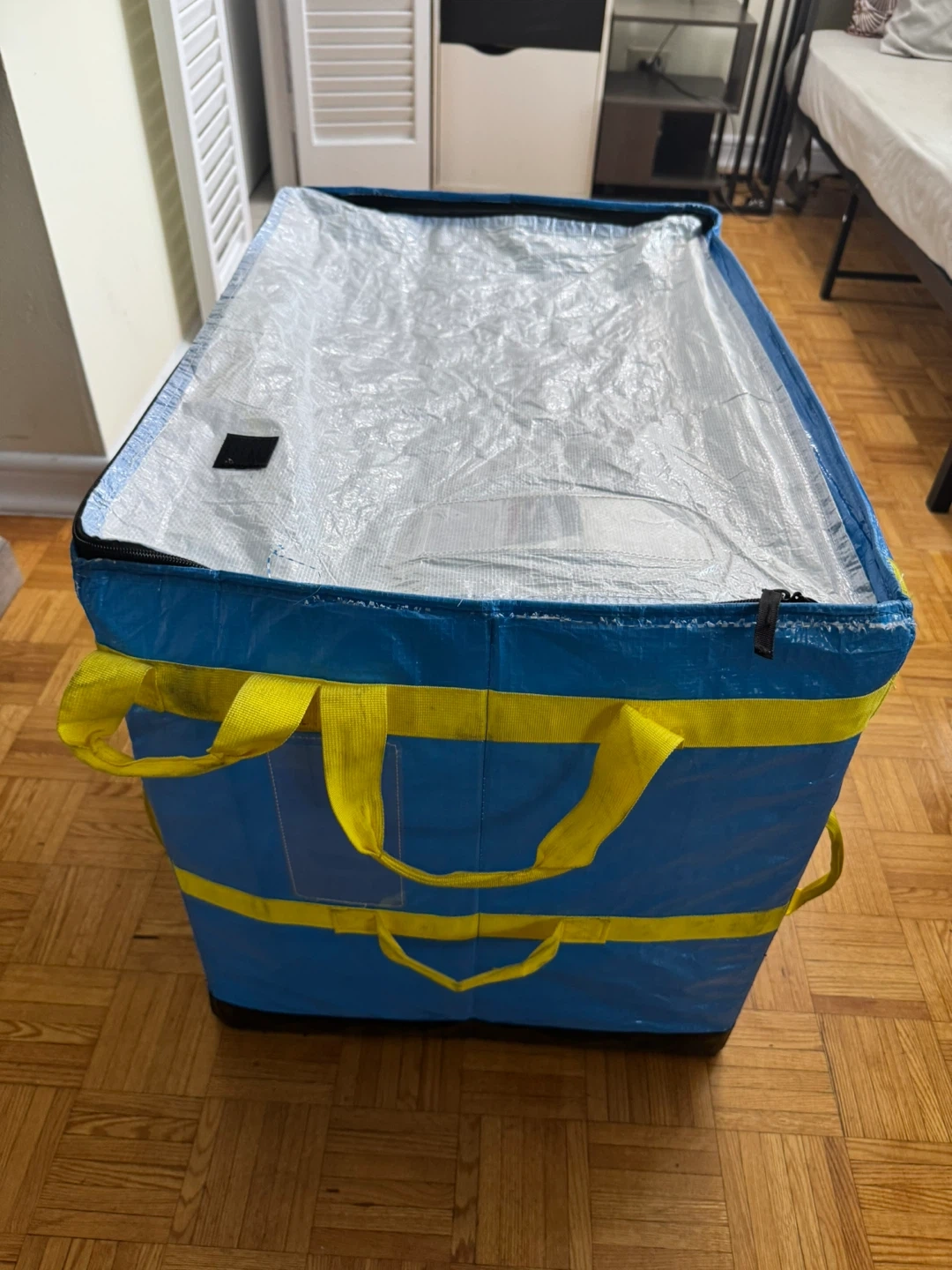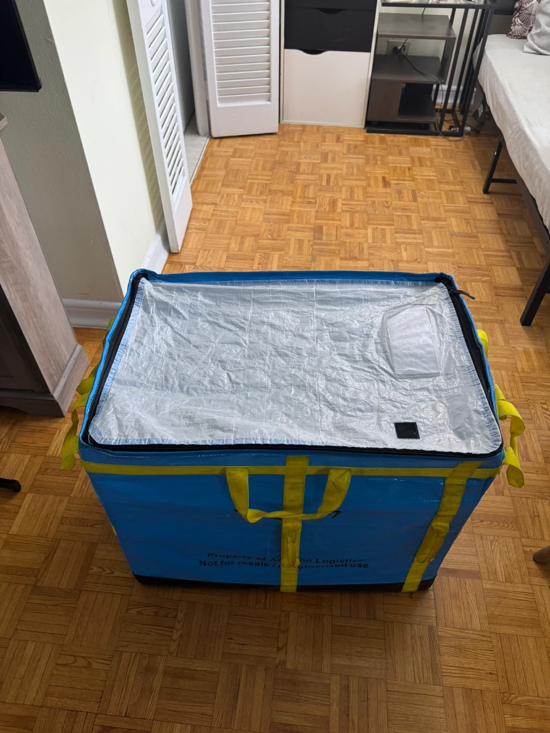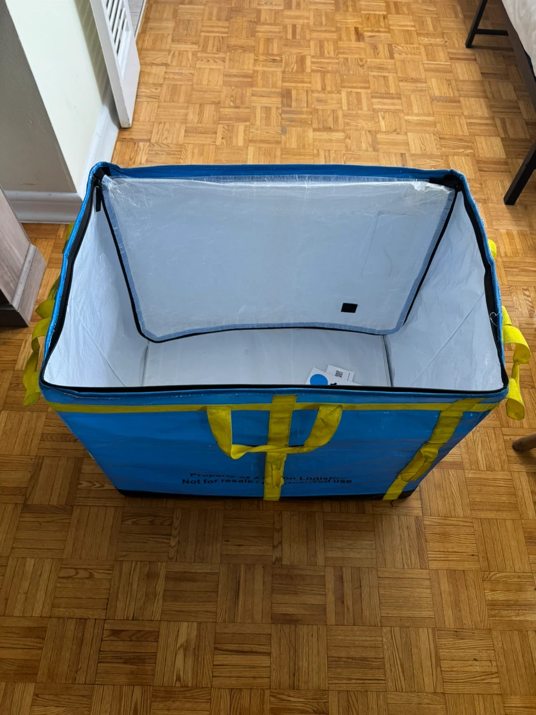 173Selling a reusable box from Amazon Logistics! It's in great condition and ready for your next move or storage needs. The box is blue with yellow straps.