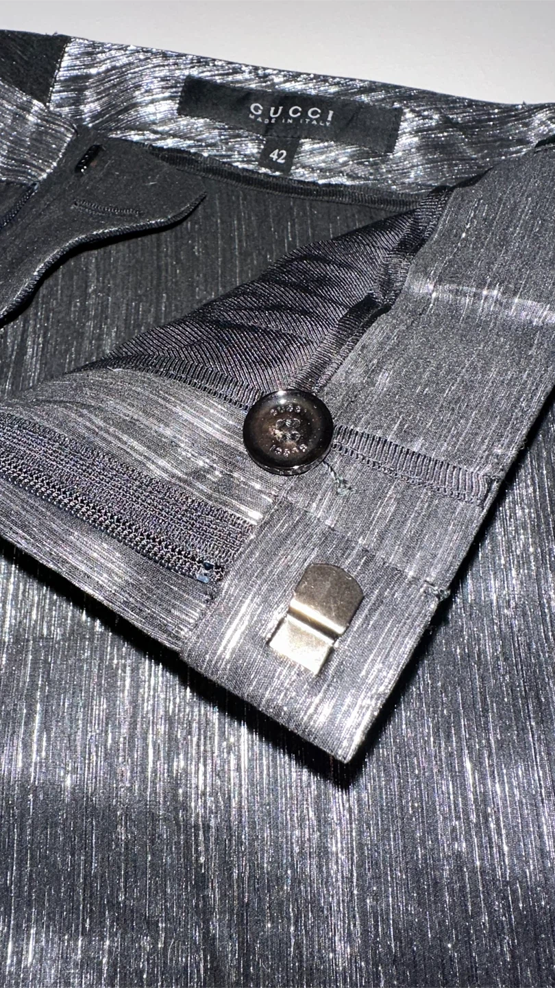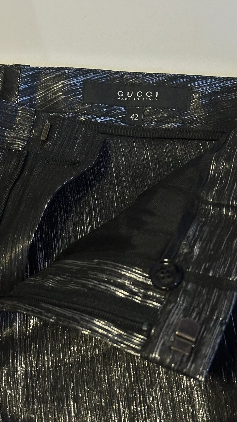 Selling a pair of stylish Gucci pants in a metallic black finish
