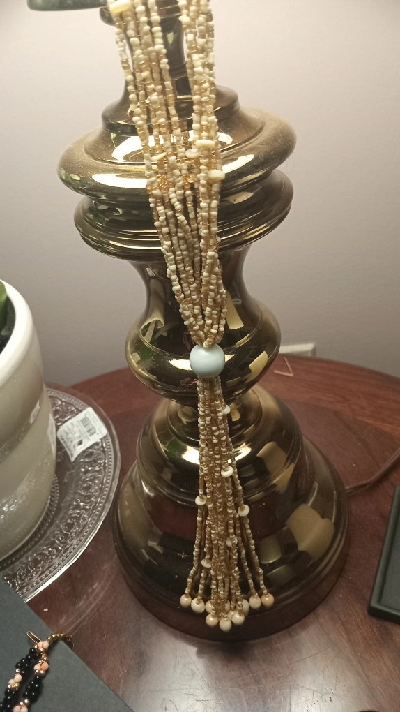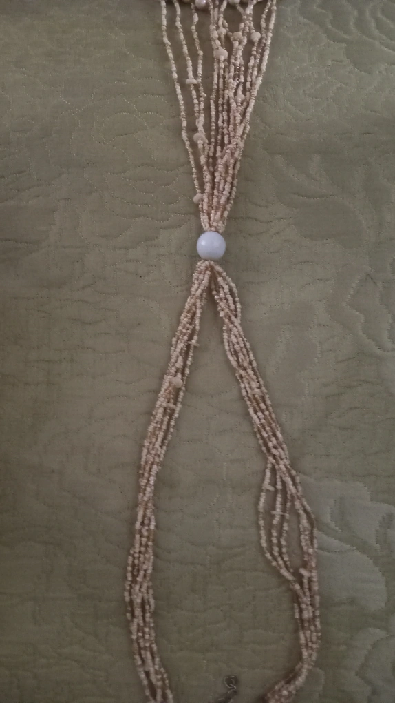 24This is a lovely beaded necklace with multiple strands. It features a central bead and has a unique, elegant design. Perfect for adding a touch of sophistication to any outfit!