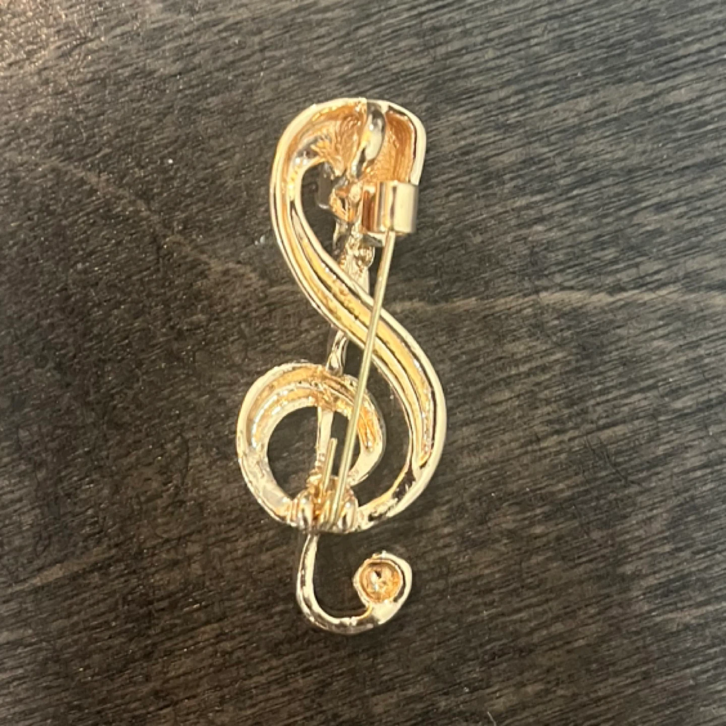Selling a brand new fashion jewelry pin! It's a gold-coloured treble clef with a microphone design. This has never been used and is in the original packaging. This pin is a unique accessory to add to your collection