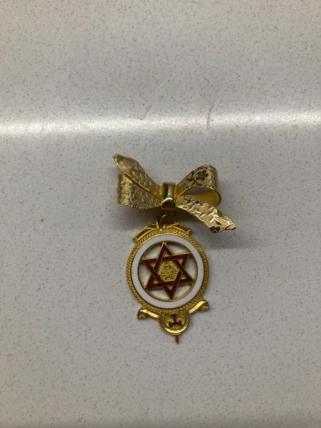 186A vintage gold tone pin with a bow and a star design. It's in good condition and would be a lovely addition to any collection