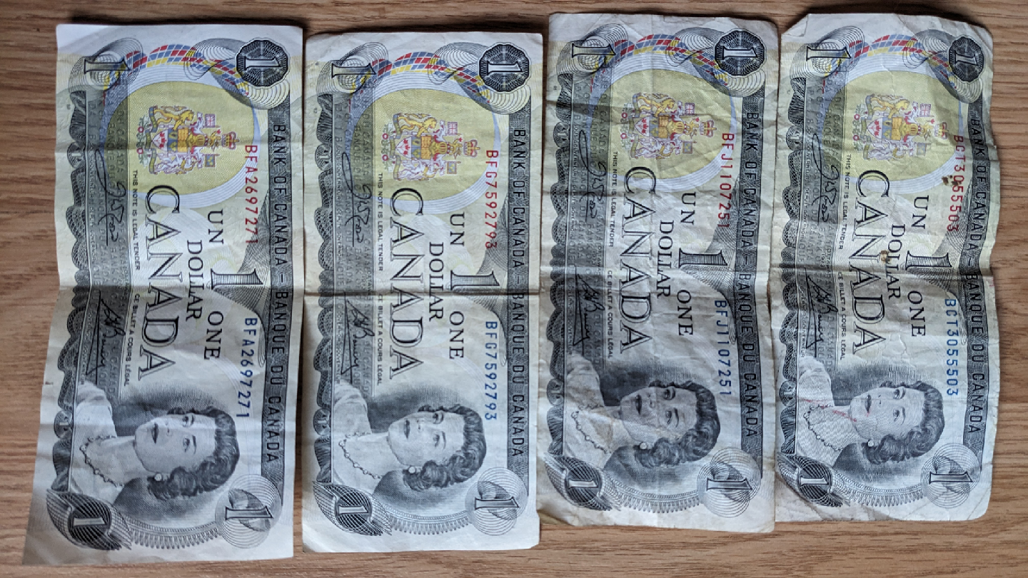 1 / 21 / 2Buy & Sell4 vintage Canadian 1 dollar bills4 vintage Canadian 1 dollar bills$8vintage money 🤑 $8 for the lot.WHERE TO MEET239 Lisgar Street TorontoView MapSELLERverifiedTO Salvage CoLittle Portugal47336 reviews5 chats·5 favorites·182 viewsSEND CHAT TO SELLERHi TO Salvage Co! I’m interested in your listing.Hi TO Salvage Co! I’m interested in your listing.Get the Karrot app to chatSign In to chat