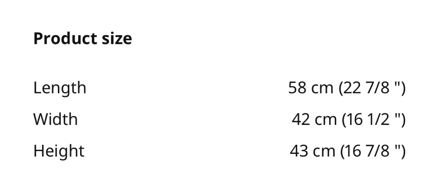 - Width: 42 cm (16 1/2 ")