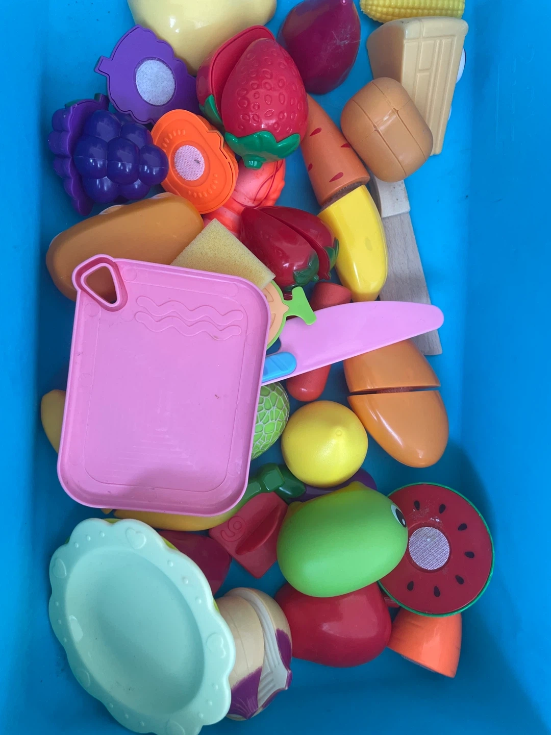 A fun set of toy food items that can be 'cut' with a toy knife, plus a play kitchen sink! Perfect for imaginative play and learning about different foods. Great for kids aged 3+