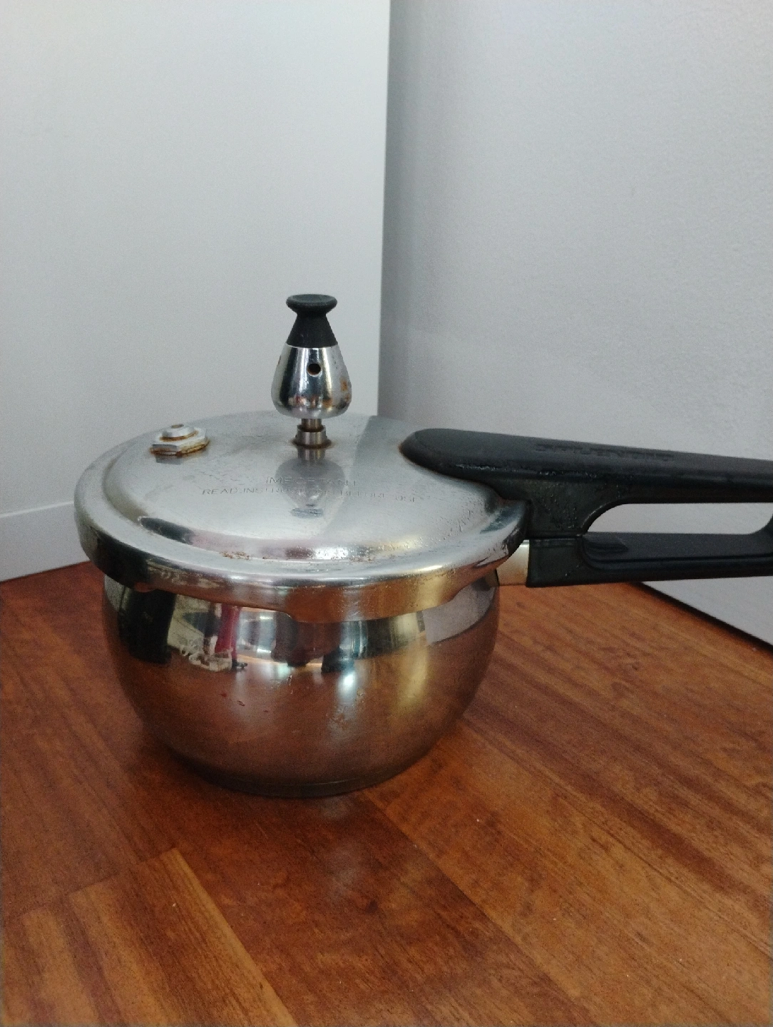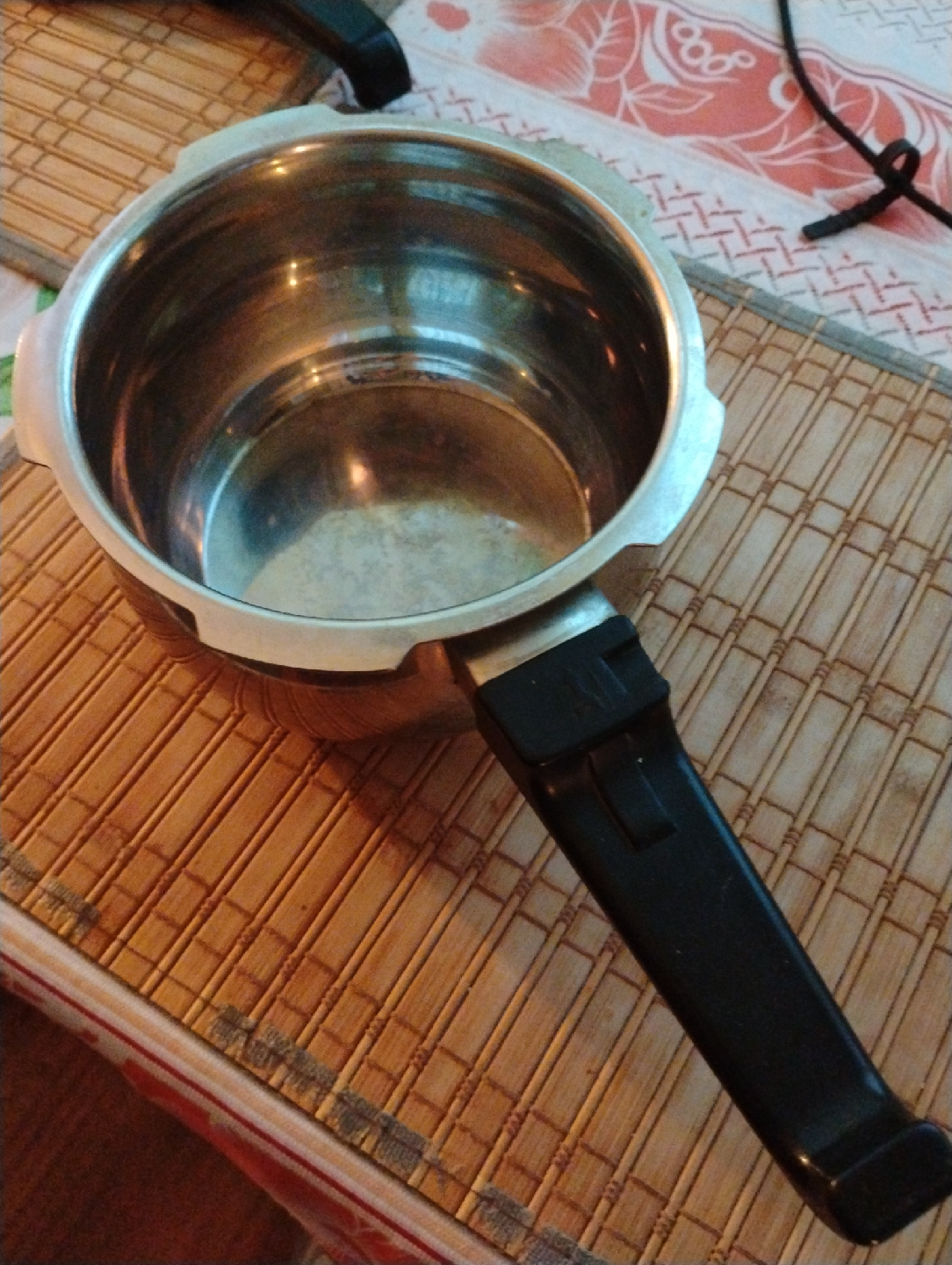 Selling a used mini pressure cooker in good condition. It's compact and perfect for making quick and easy meals. The handle is black, and the body is silver.Cash only