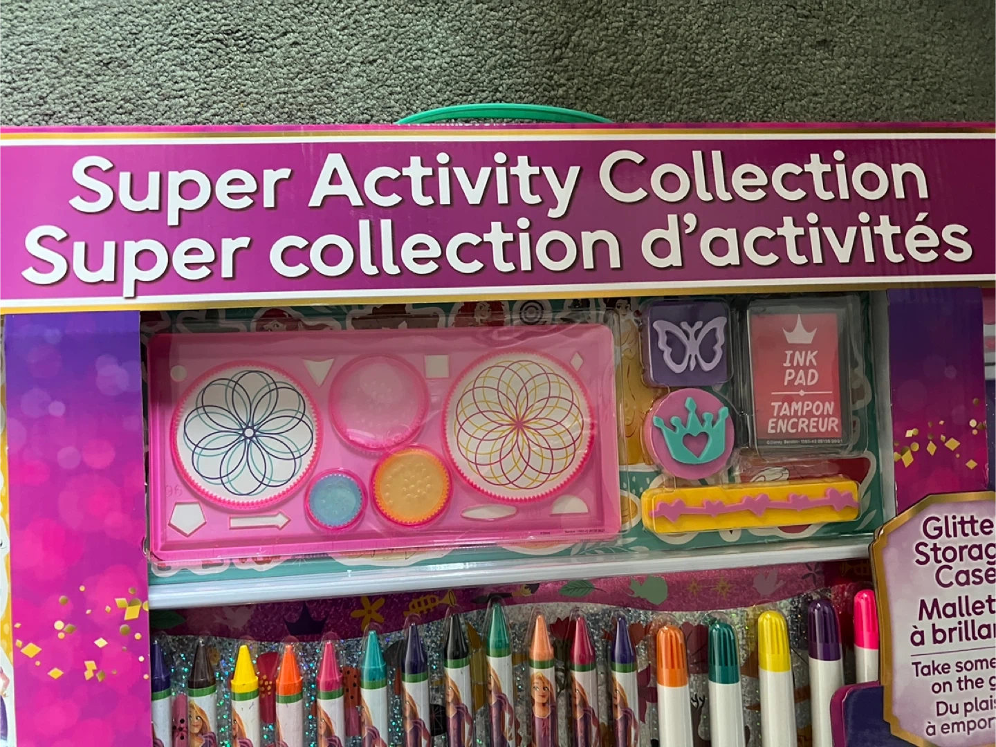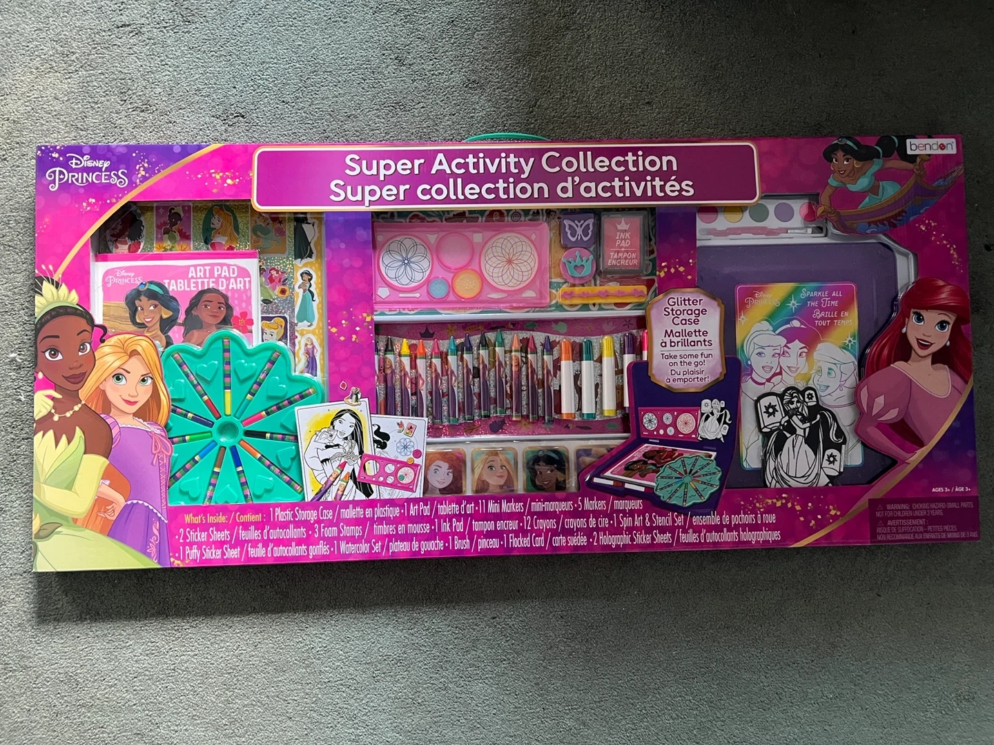 Selling a brand new Disney Princess Super Activity Collection! This set includes 7 creative activities like sticker play, stamper fun, spin art drawing, painting with watercolors, creative coloring, puzzles & games, and design & decorate. It also comes with a plastic storage case, sticker sheets, puffy sticker sheet, felt stamps, ink pad, foam stamps, crayons, fibre markers, watercolor sheet, and flocked card item comes from a pet and smoke free home. Port union/401/Pickering for porch pick up.