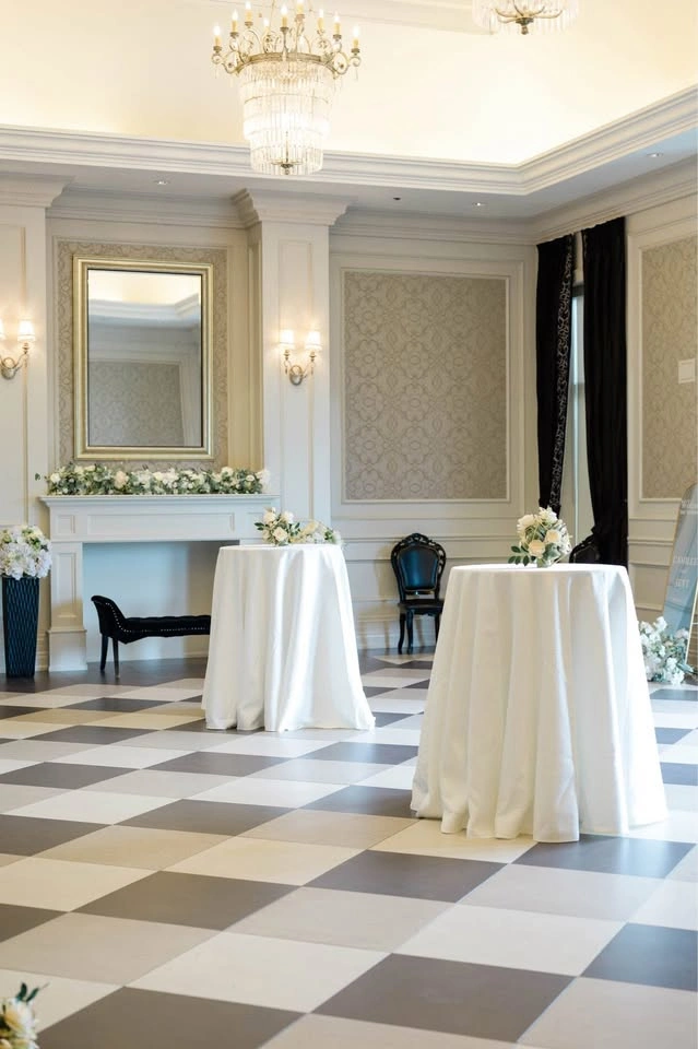 20Elevate your event with these handmade centrepieces, made with realistic rose bunches wrapped in a sage green satin ribbon. $15 each to rent. 8 total available.