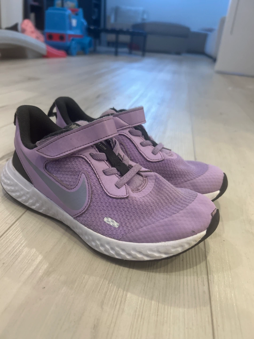 65Selling a pair of Nike Revolution 5 kids' shoes in a lovely lilac colour! They're in great shape and ready for a new home. Size is 2.5Y (US).
