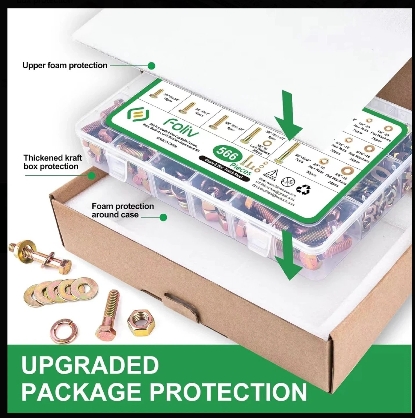 Show allFOLIV 566 pcs Grade 8.8 Metric Bolt Assortment Kit