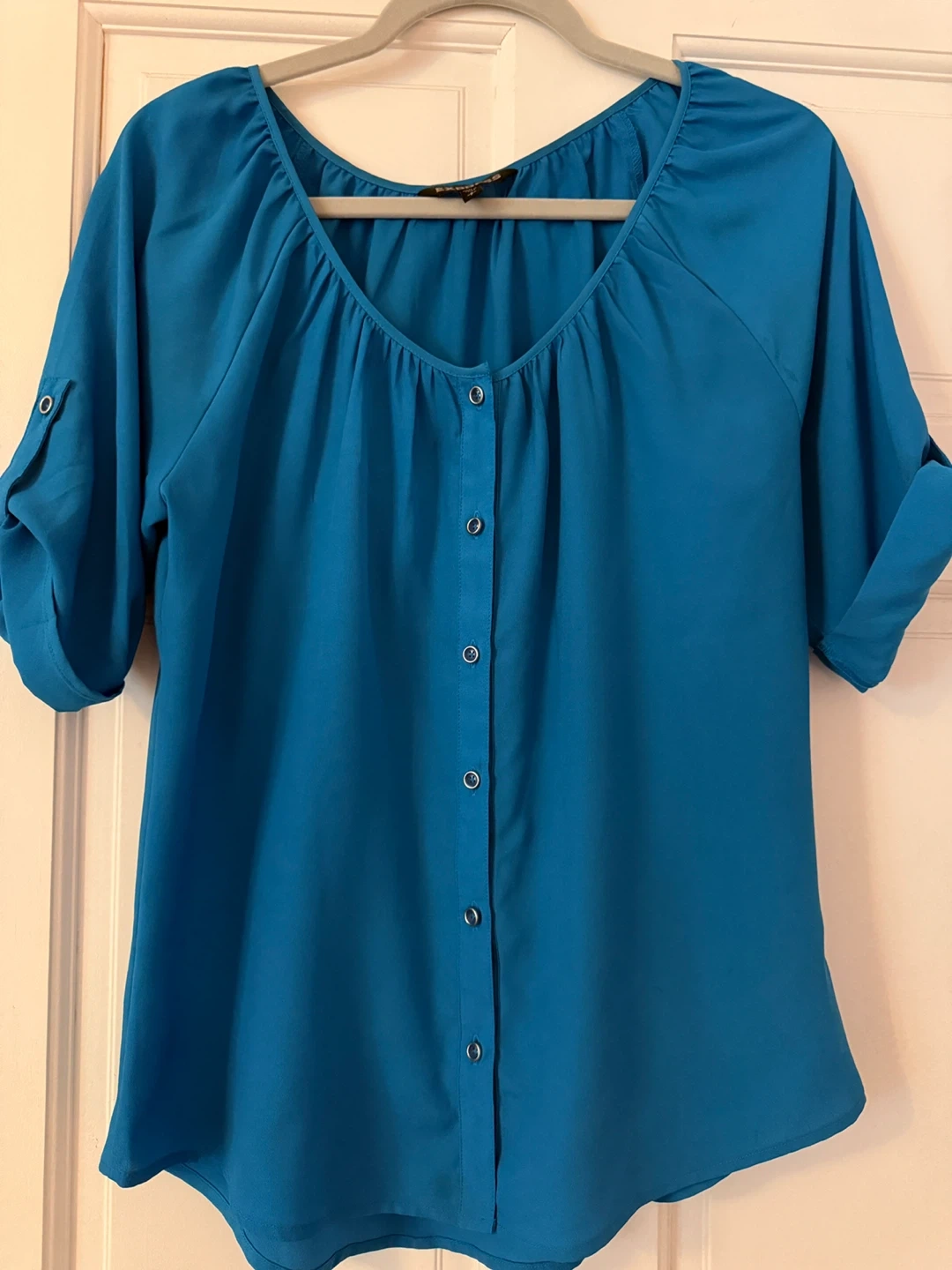 206I'm selling a cute blue button-down top from Express! It's a size small and in great condition. The color is a beautiful bright blue, perfect for adding a pop of color to your wardrobe