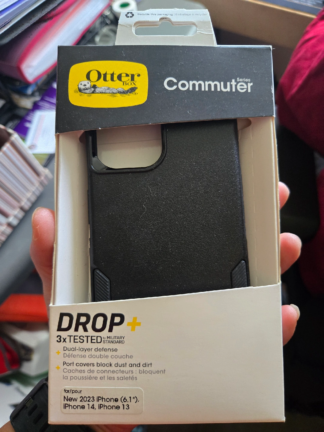 Selling a brand new Otterbox Commuter Series case! It's designed for the iPhone 14, iPhone 13, and the new 2023 iPhone (6.1"). It features a dual-layer defense and port covers to block dust and dirt. The box is included