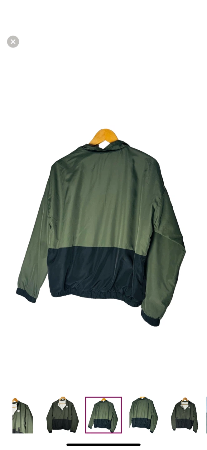 Stylish green and black windbreaker jacket. Perfect for outdoor activities.