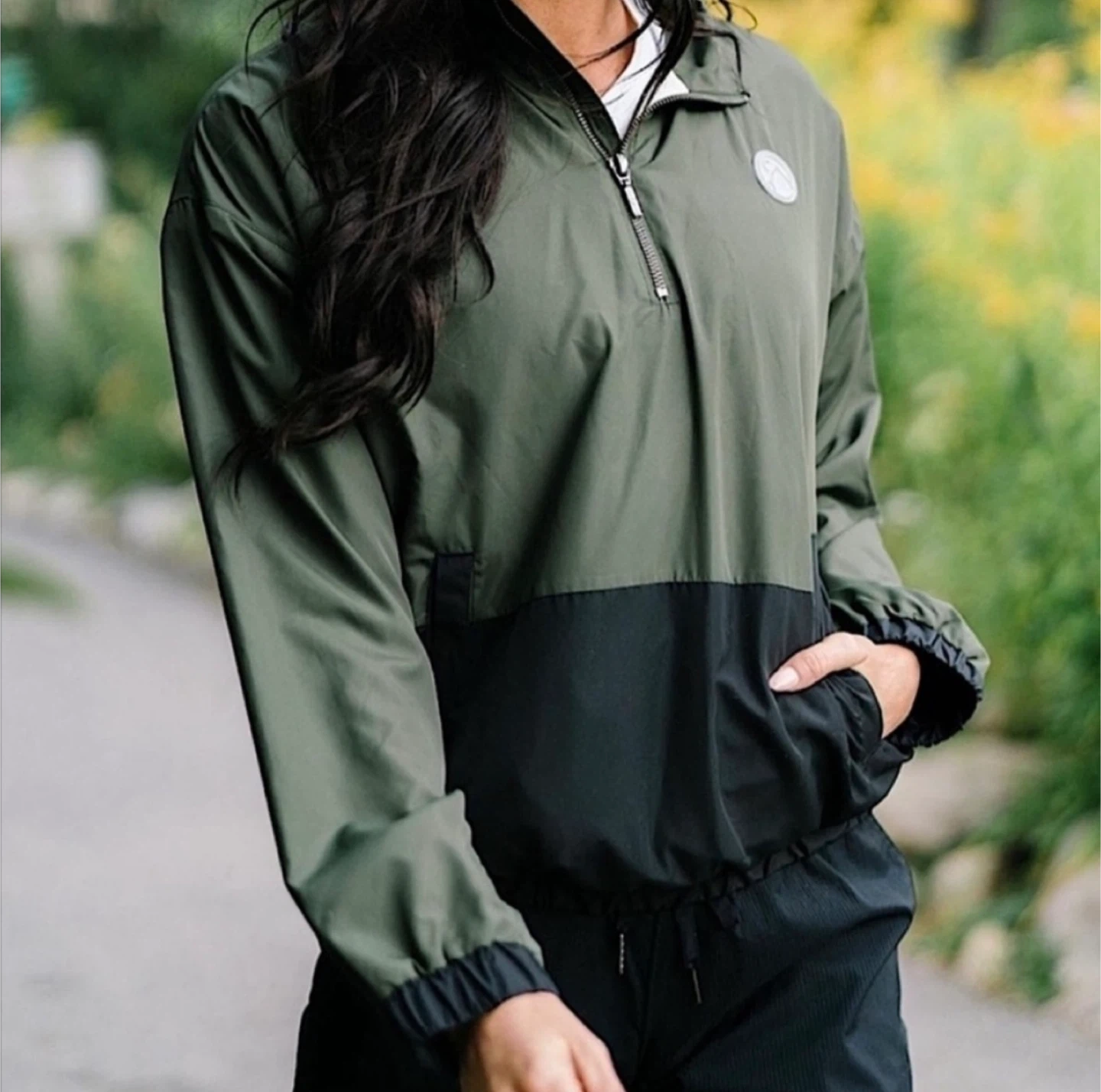 Zyia Active Forest Green 1/4 Zip Windbreaker Jacket