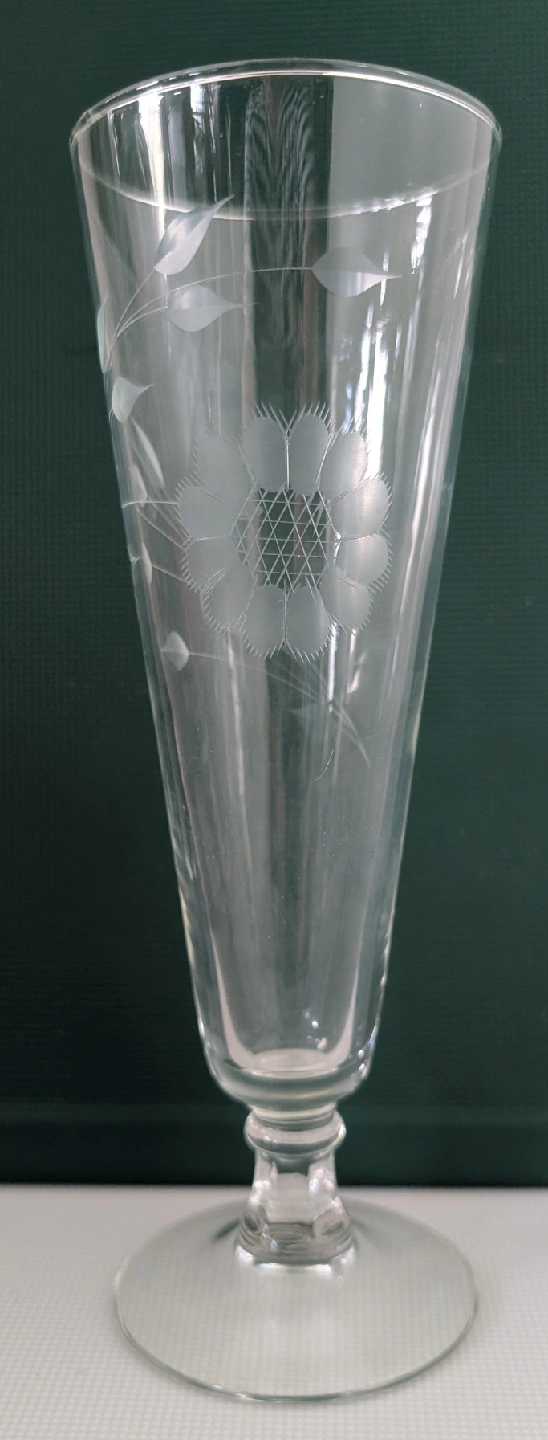 283Vintage WJHughes Cornflower etched Pilsner beer glass