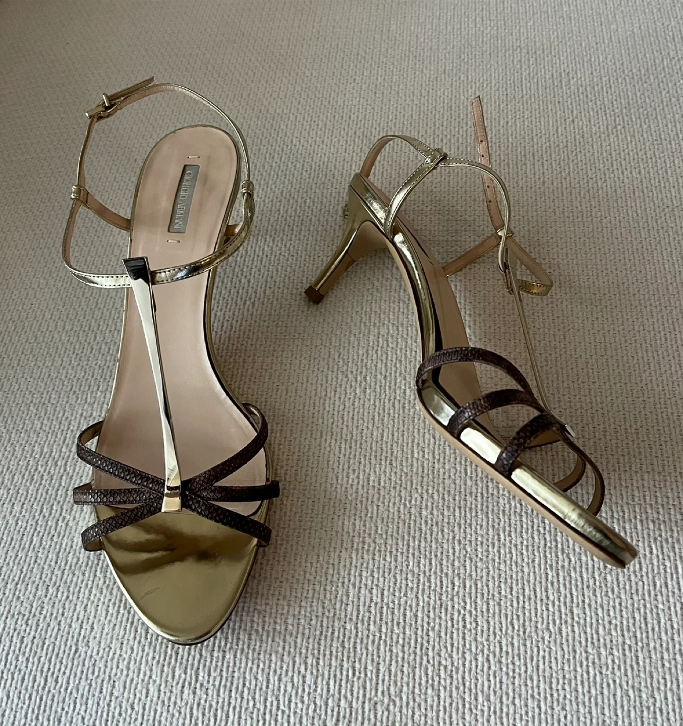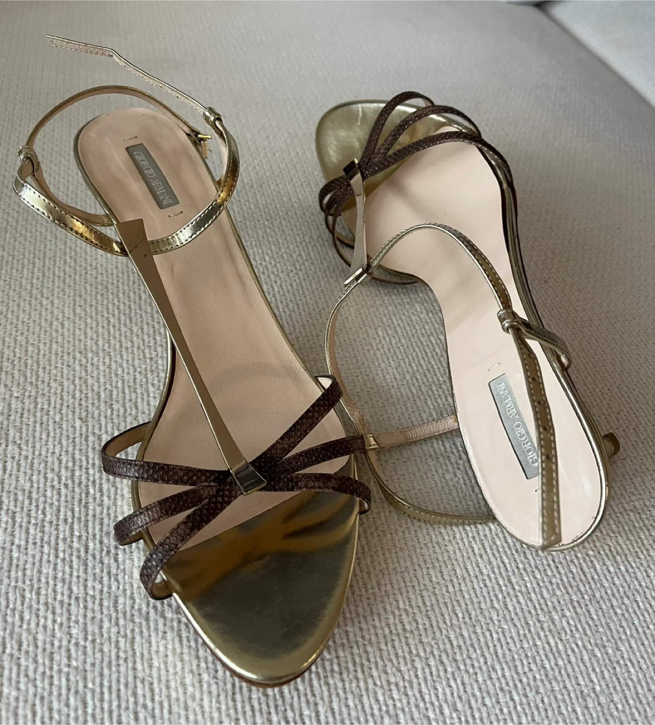 Giorgio Armani Gold/ Brown Leather Sandals Women Size 8