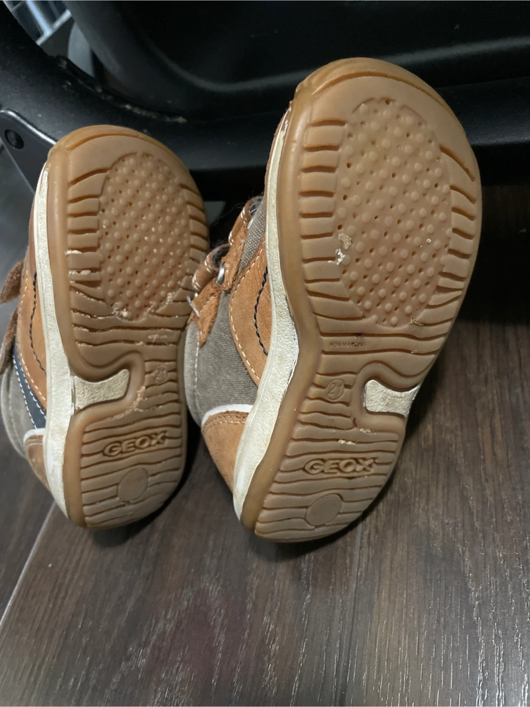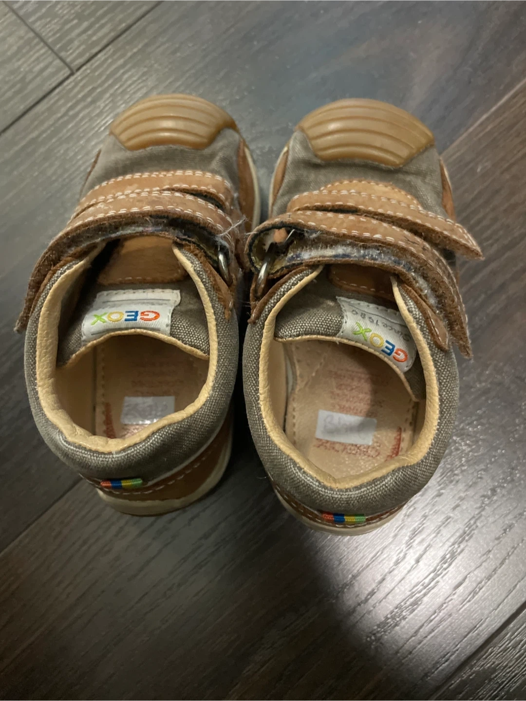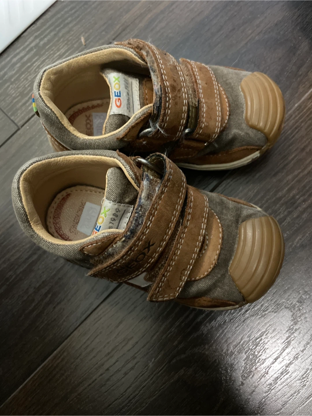 914Selling a pair of Geox toddler shoes in size 23. They feature a brown and grey colour scheme with velcro straps, perfect for little ones on the go!