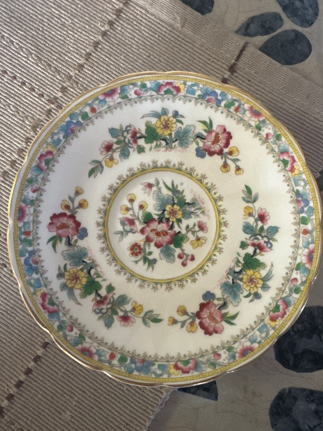 Selling a lovely Foley bone china saucer in the Ming Rose pattern. It's in great shape and would be a beautiful addition to any tea set or china collection! Made in England.
