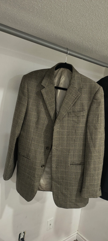90Selling a Wooltouch blazer in size 40/102 L tall It's a stylish blazer with a classic look. The material is wool.