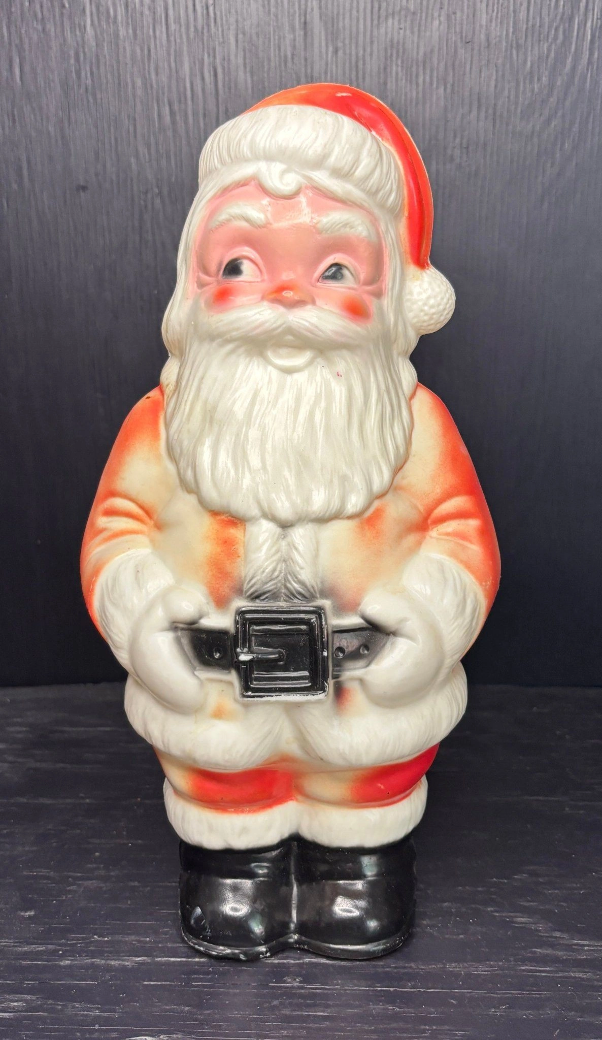 15Bring nostalgic holiday cheer to your home and add a cool way to save your spare change with this Vintage Blow Mold Santa Claus Piggy Bank. This collectible Christmas piggy bank features a classic Santa Claus design and a slot for saving coins. Perfect for Christmas décor, vintage enthusiasts, or as a unique gift, this piggy bank adds festive charm to any space and will surely brighten up your home all year round. Made by Regal Canada, this Christmas themed piggy bank is ideal for collectors, Christmas lovers, and retro décor fans. It stands 12 inches or 31cm tall and comes with the original stopper. Add some Christmas joy to your savings with this awesome Santa Claus piggy bank. Local pickup is in Etobicoke near Islington and The Westway. We offer shipping and local delivery for this item. Please send a message about availability and cost associated with these respective services. Alternately, if you wish to pay by credit card or Paypal and have it shipped, you can order it on our website by copying and pasting this link into your browser: https://hljathome.com/products/vintage-blow-mold-santa-claus-piggy-bank
