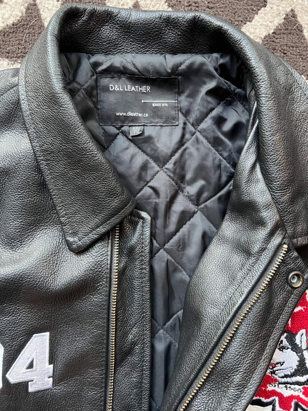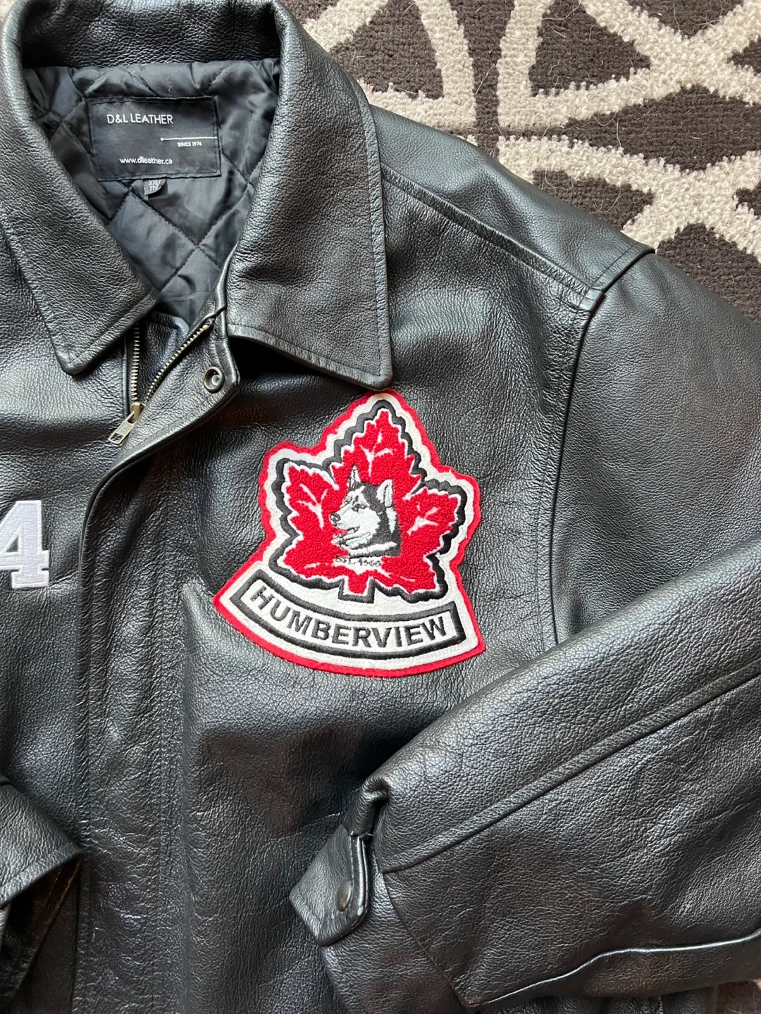26Send me your best rates! It’s a D&L high quality Leather jacket with Humberview Huskies patches! It's in great condition and is a size XXL. So if you’re a M or L and you’re going for an oversized look, it’s a perfect fit