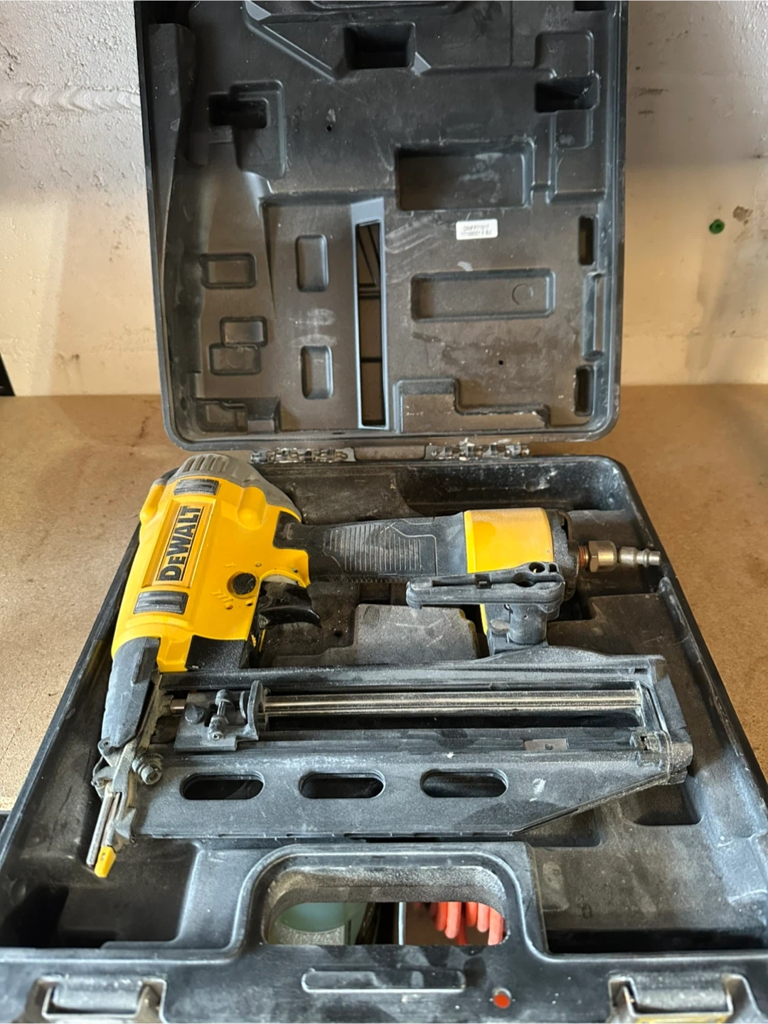 194Selling a Dewalt pneumatic nail gun. It comes with its original case for easy storage and transport. Great for various construction and woodworking projects! Please take a look at the photos for the condition. Pick up only 65 Belgravia Ave. Cash only