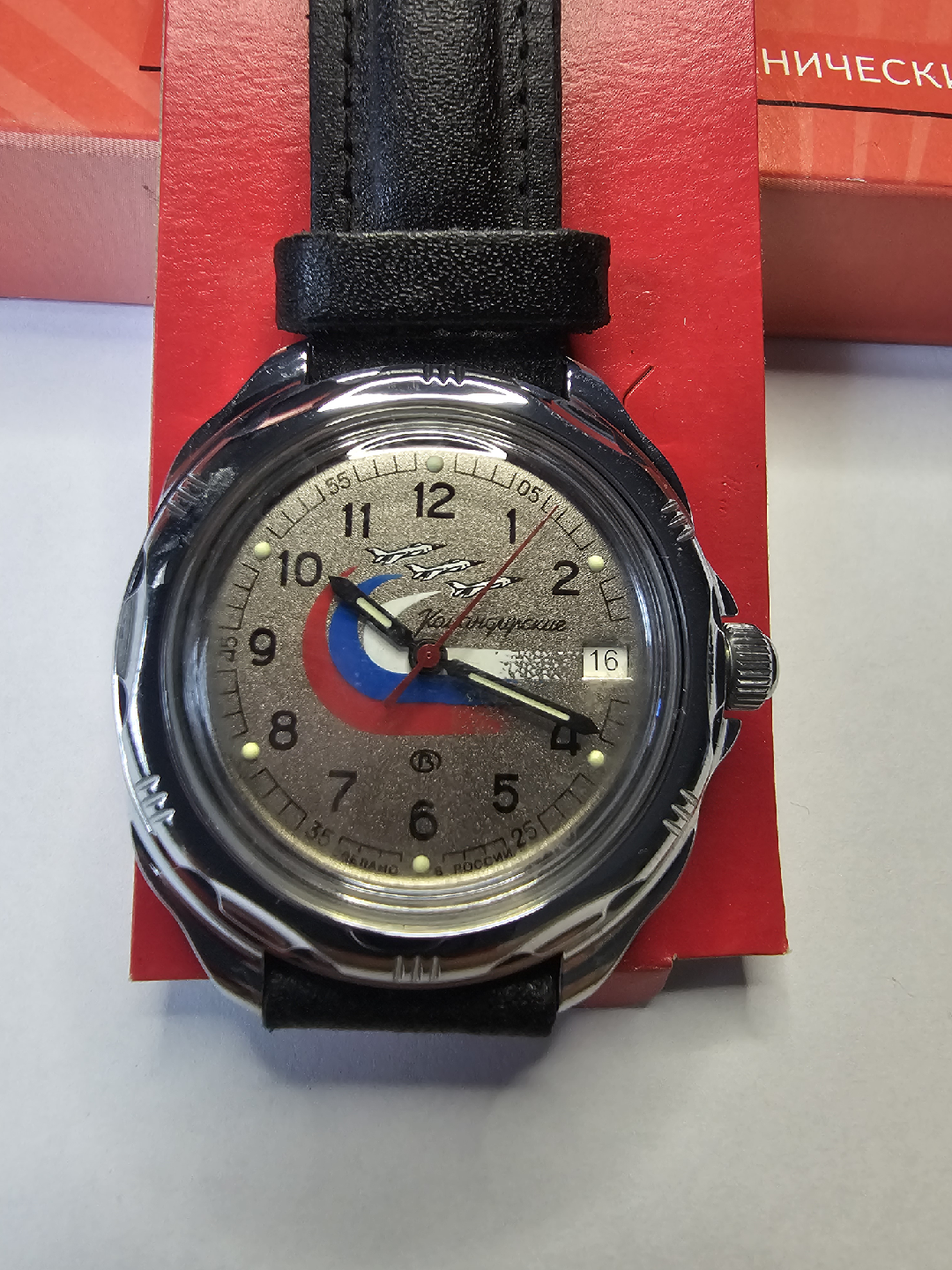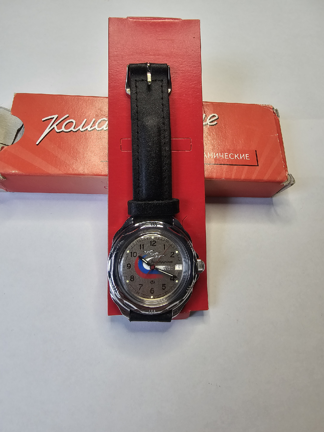 Selling a Vostok Komandirskie mechanical watch! It comes with its original box. The watch has a unique design and is in good condition. Perfect for watch collectors or anyone who appreciates a classic timepiece.